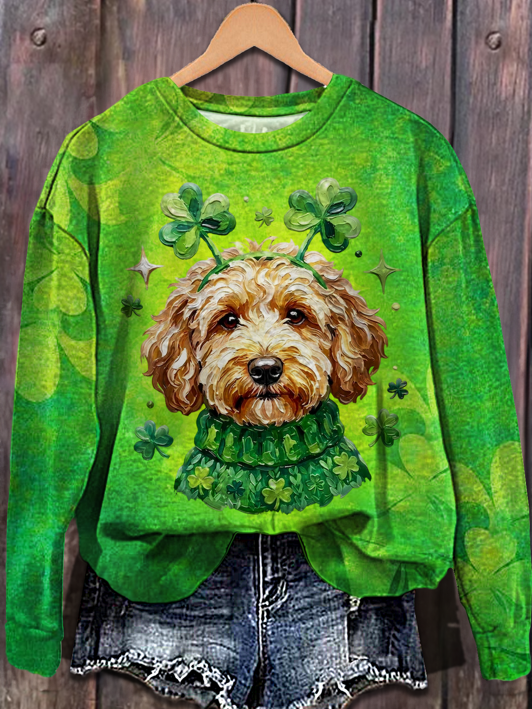 St Patricks Goldendoodle Dog Printed Long Sleeve Casual Top
