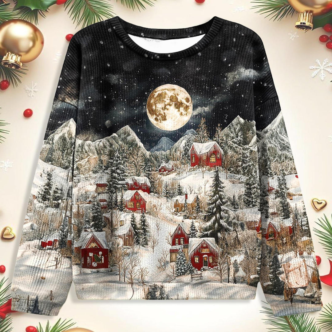 Women's Christmas Night Scene Print Round Neck Ugly Sweater