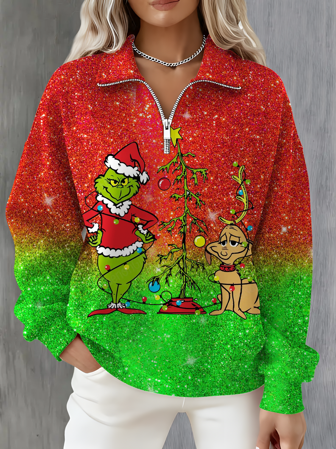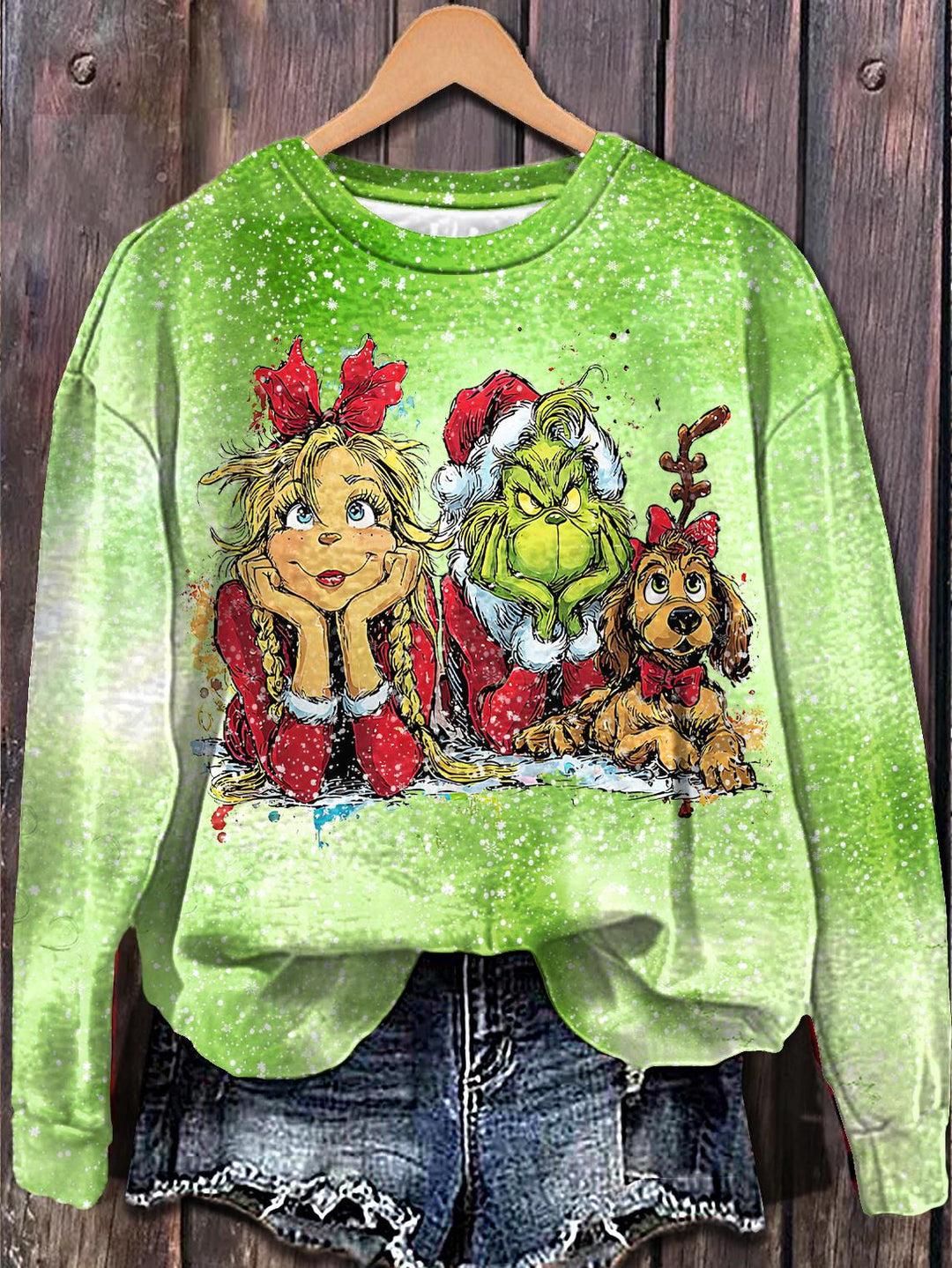 Christmas Cute Grinch Print Long Sleeve Casual Top