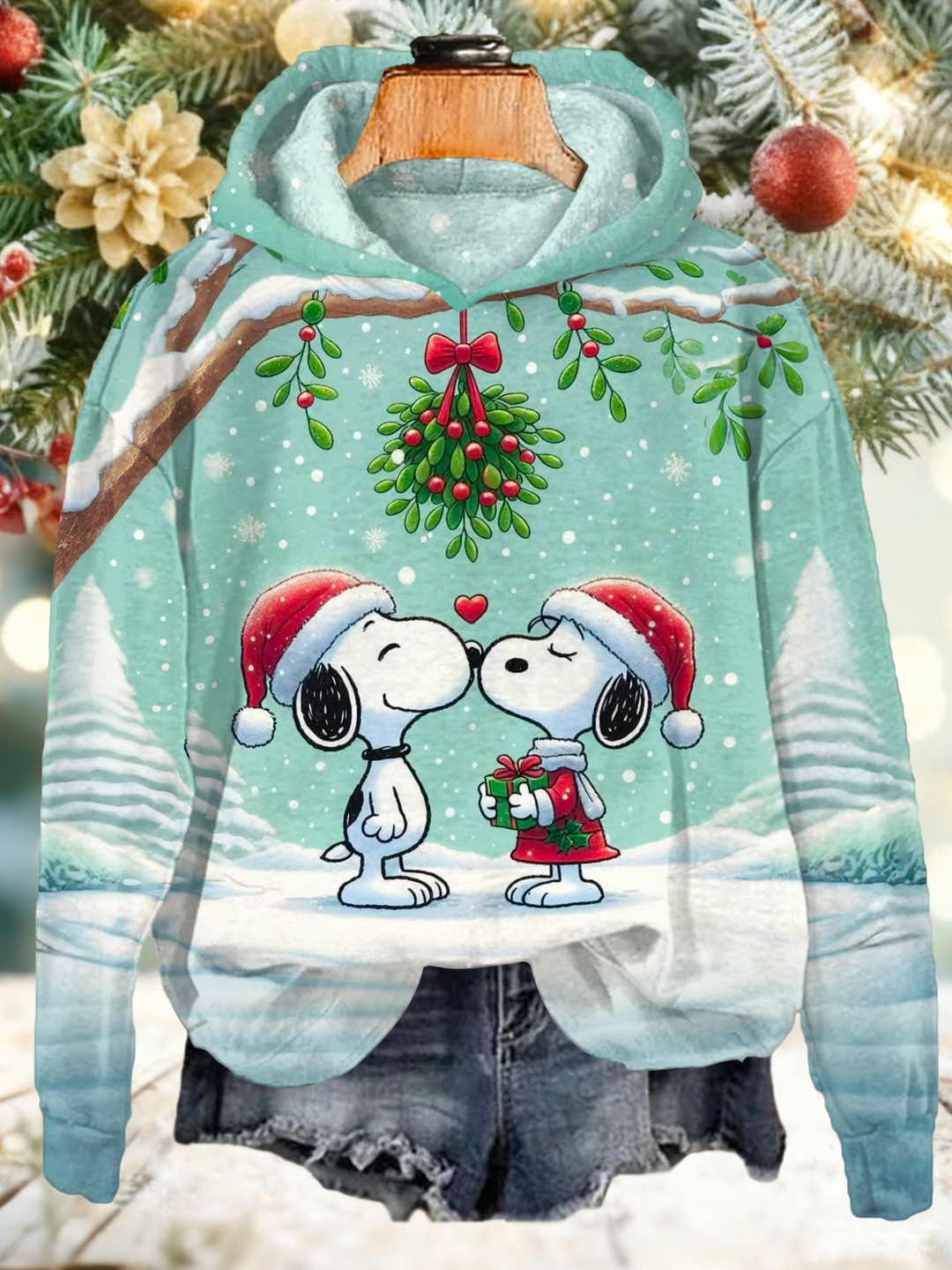 Snoopy Christmas Kiss Long Sleeve Printed Hoodie