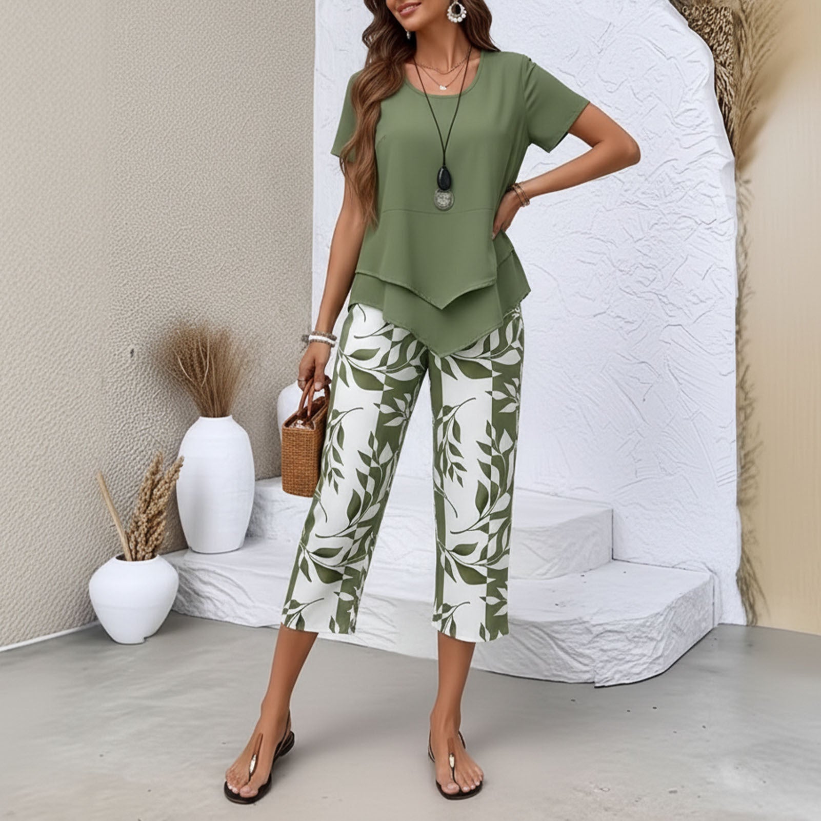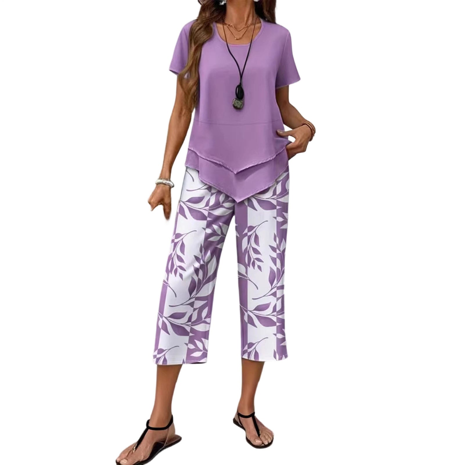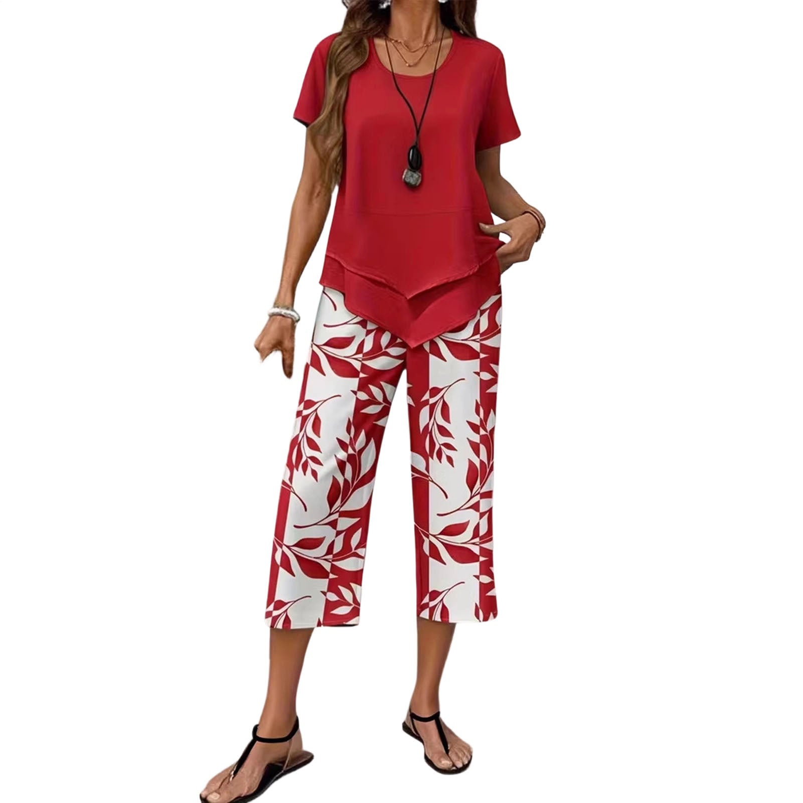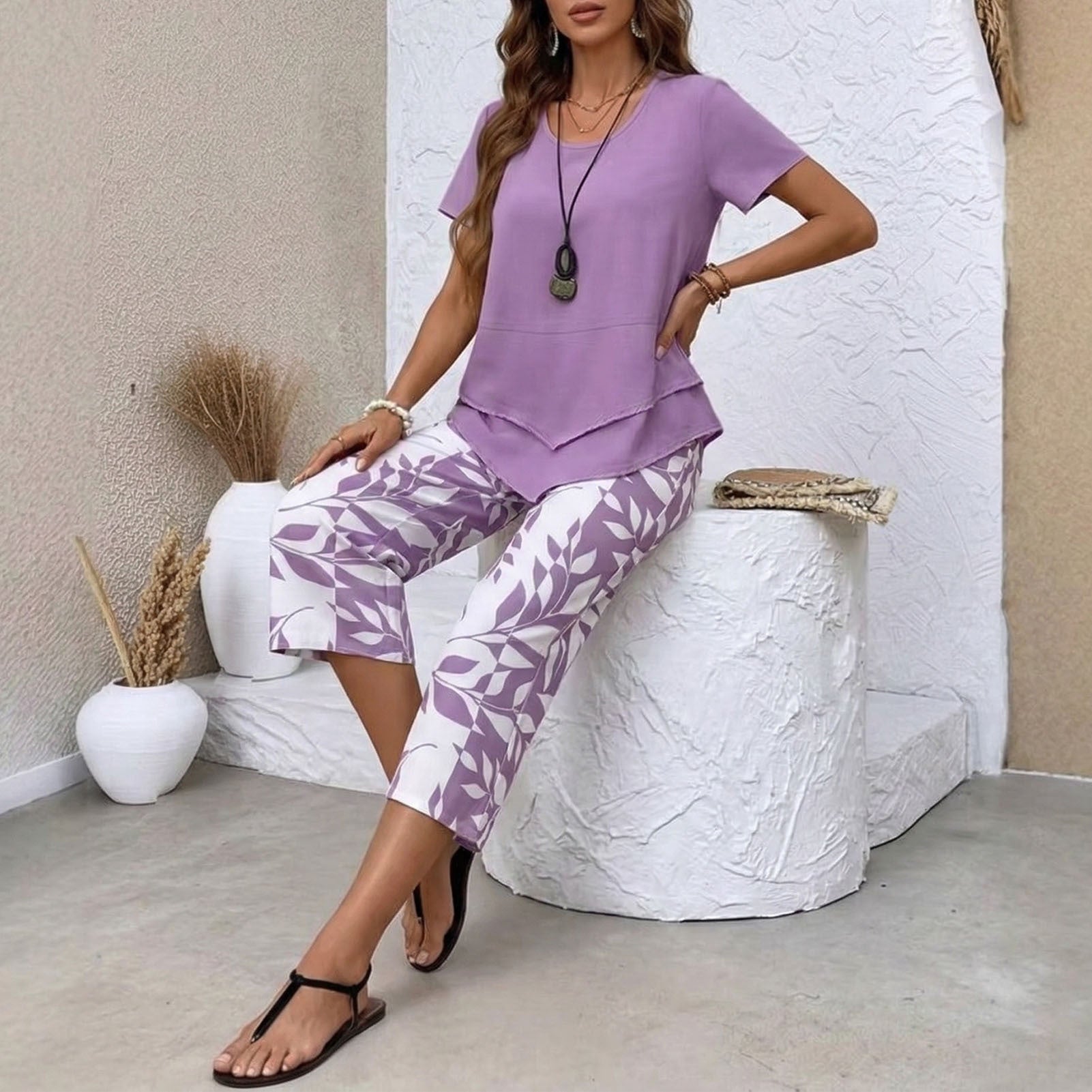 The Summer Short Sleeve Blouses and Wide Leg Capri Pants Matching Sets are designed for comfort and versatility, making them ideal for various occasions. These matching sets provide a stylish combination of a breezy short sleeve blouse and relaxed wide leg capri pants, perfect for staying cool during warm weather. Whether you are heading to the beach, traveling to new destinations, or taking part in leisure activities, these outfits ensure effortless style and ease of movement.