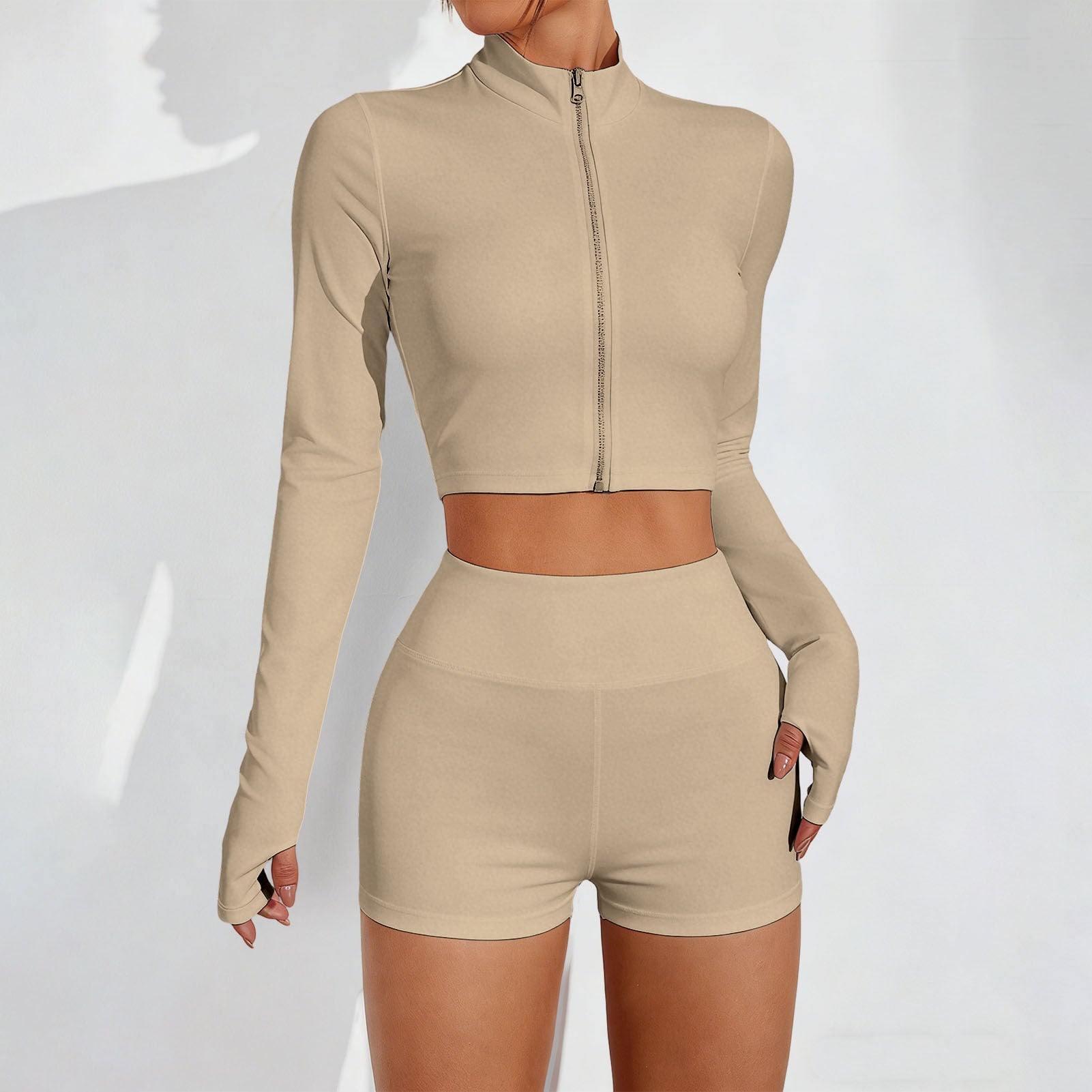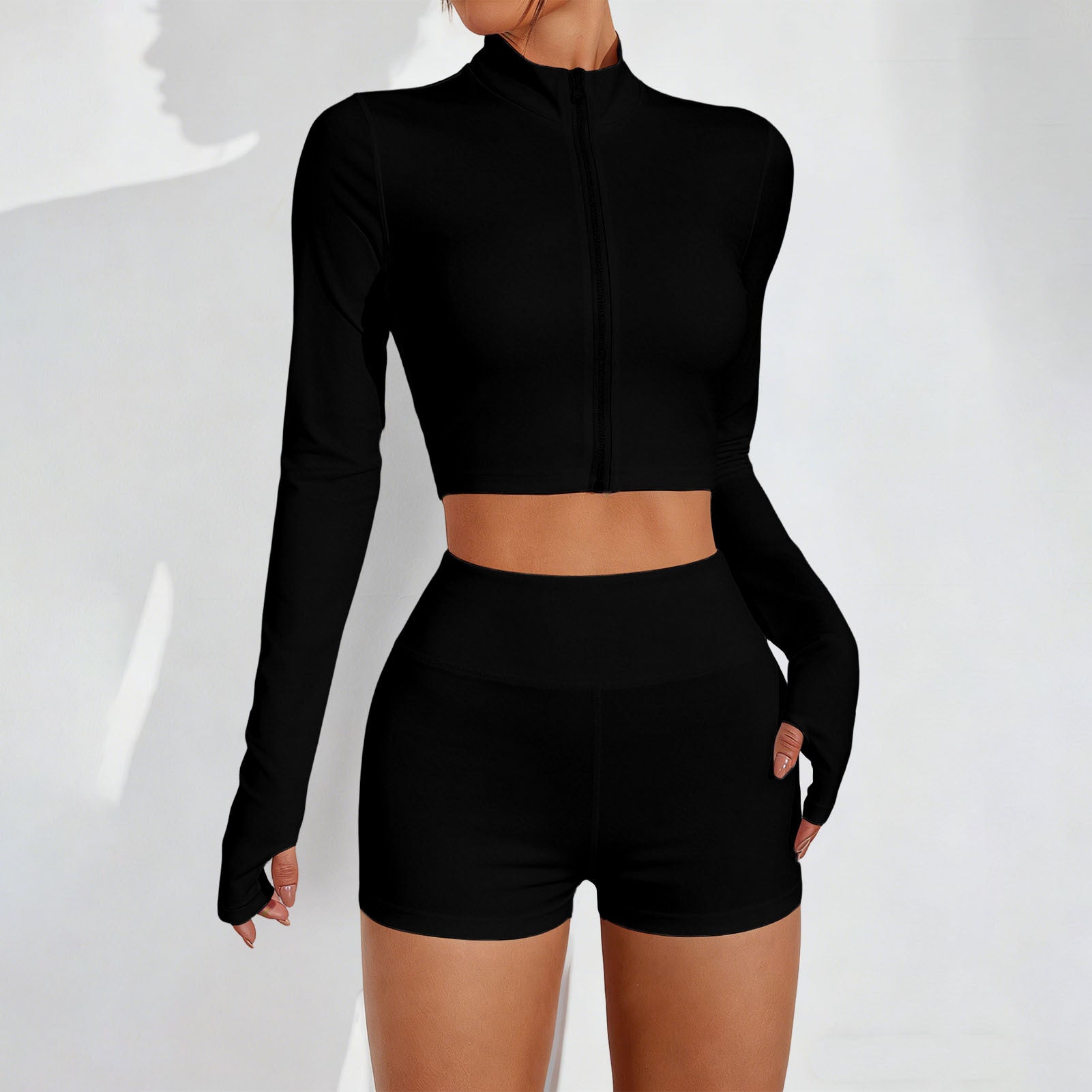 3 Piece Gym Set for Women Quick Dry High Waisted Shorts Crop Top Jacket Yoga Workout Outfit for Gym Daily present