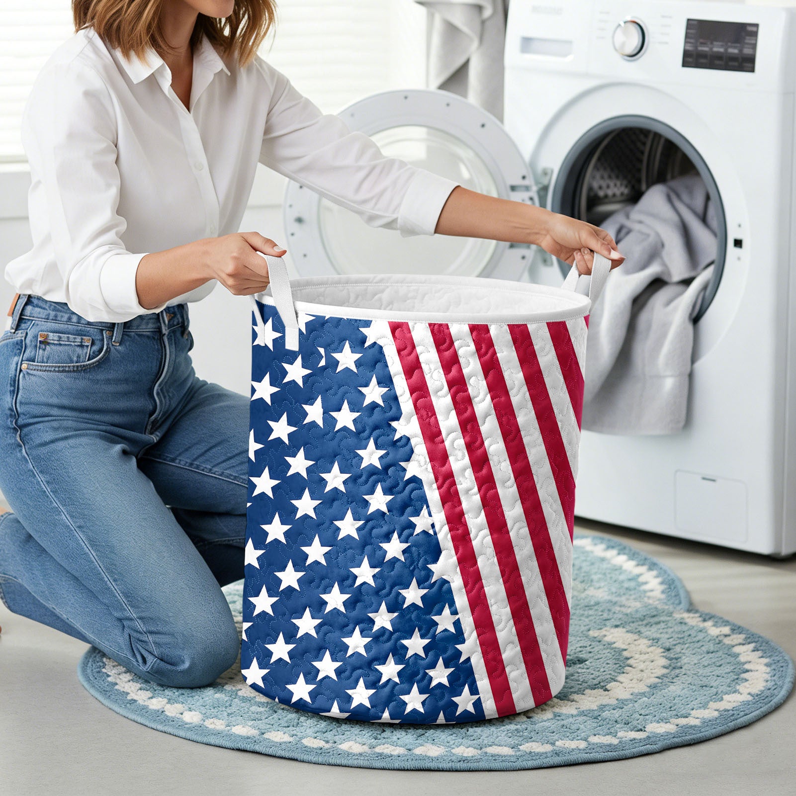 American Flag Laundry Basket Quilted Summer Holiday Basket Large Laundry Hamper with Handles for Bedroom adorable