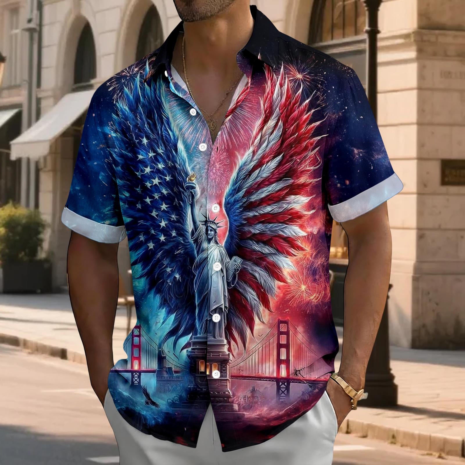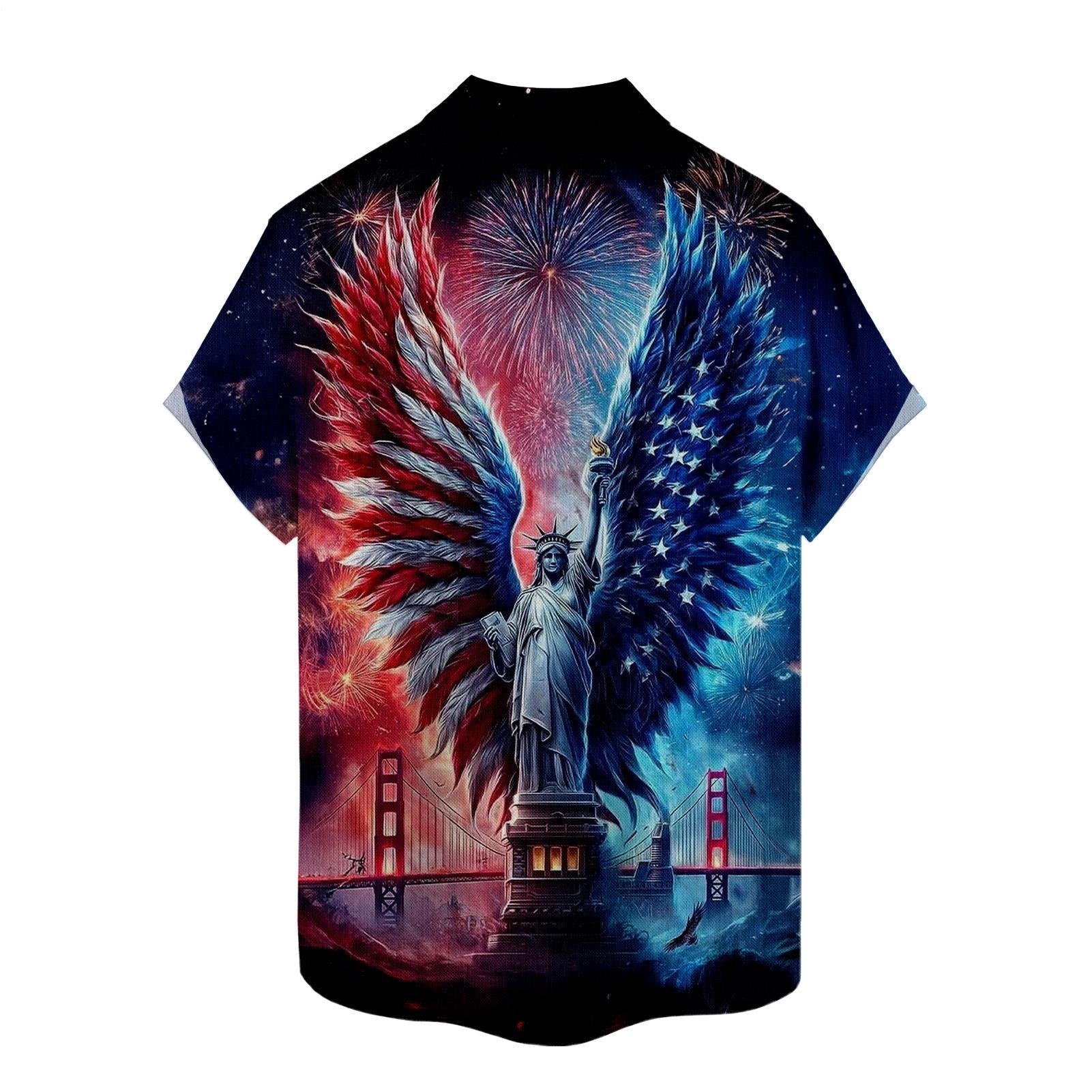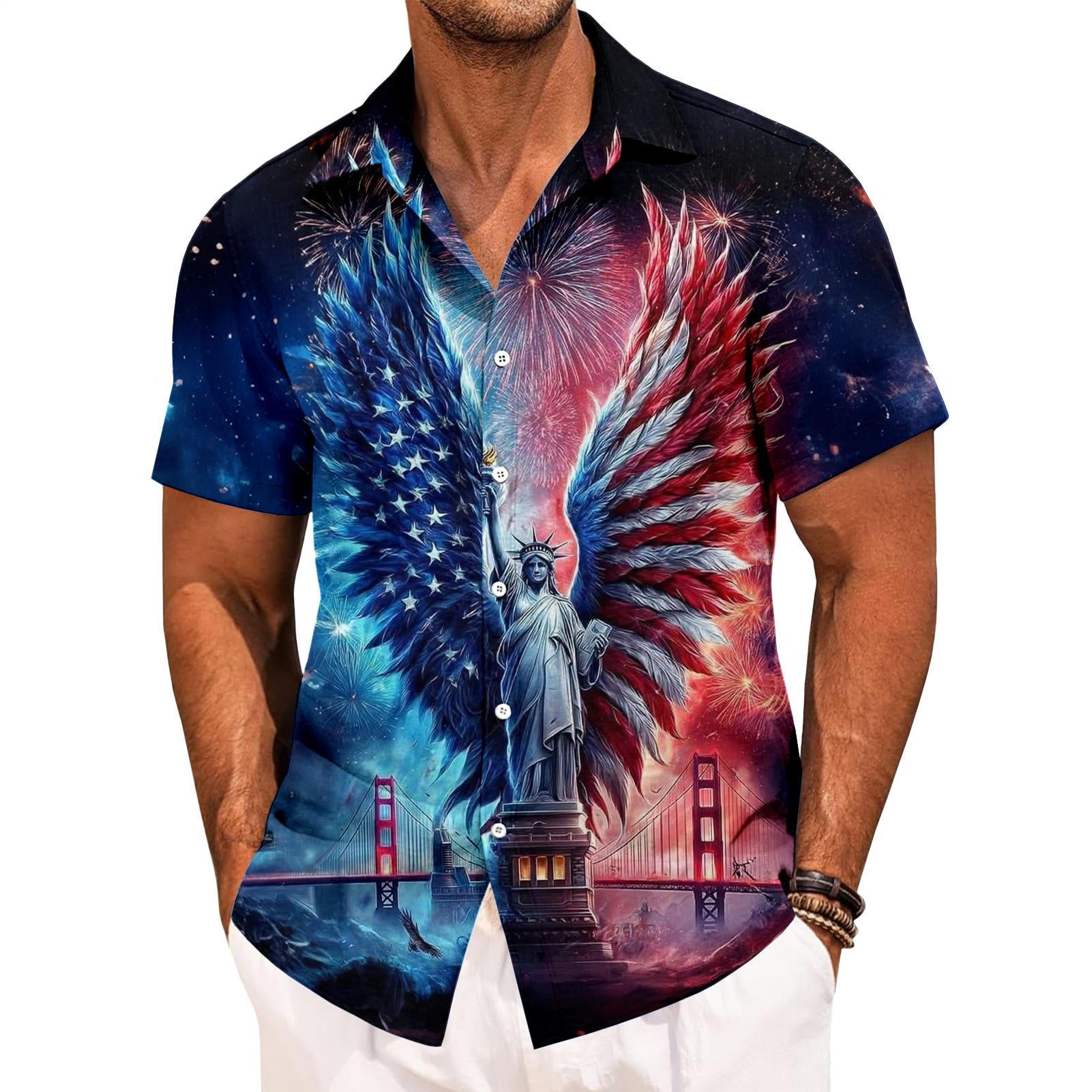 Flag Button Up Shirt Men Eagle Print Short Sleeve Button Down Patriotic Hawaiian Shirts for Parade Party amiable