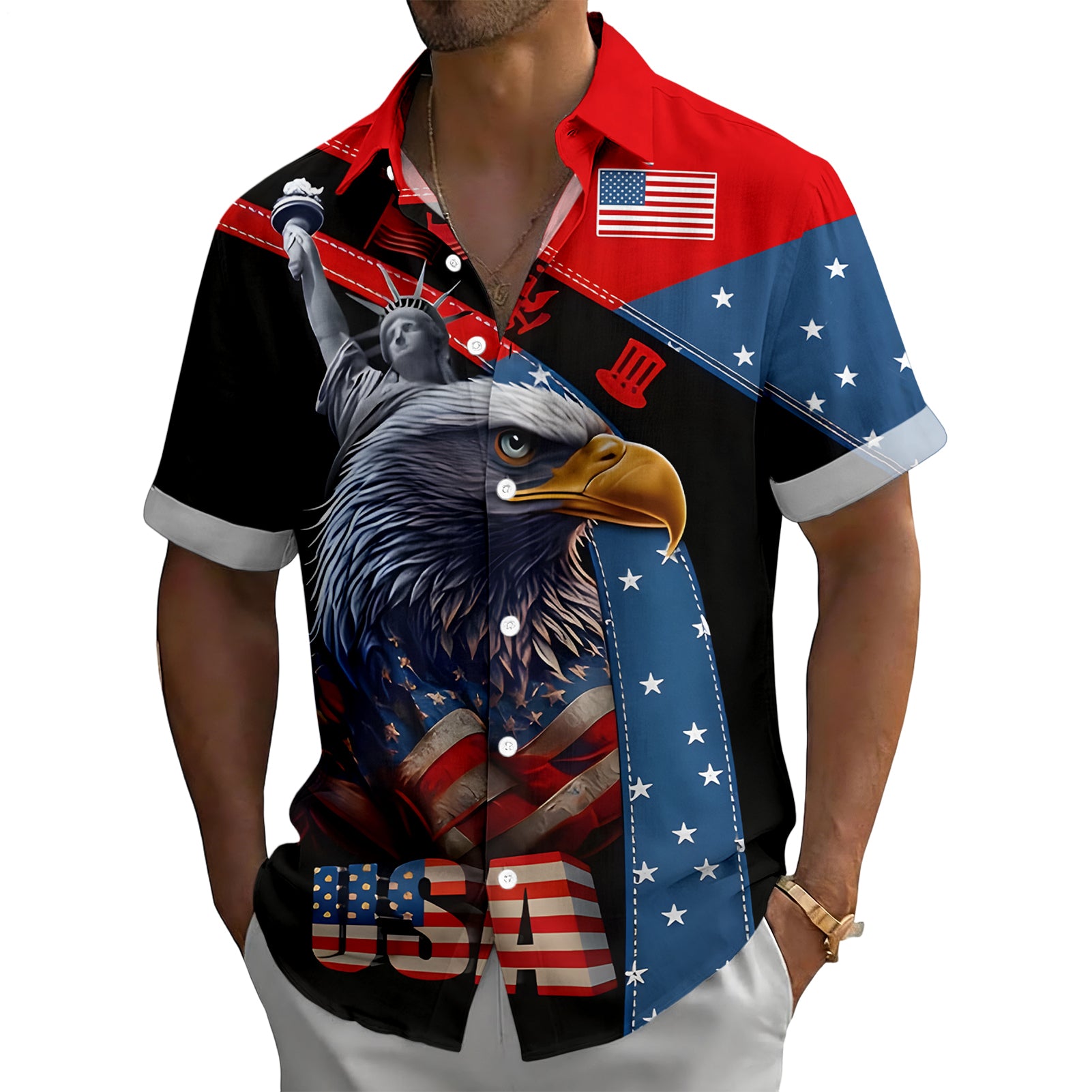 Product Name: Mens Patriotic Button up Shirt