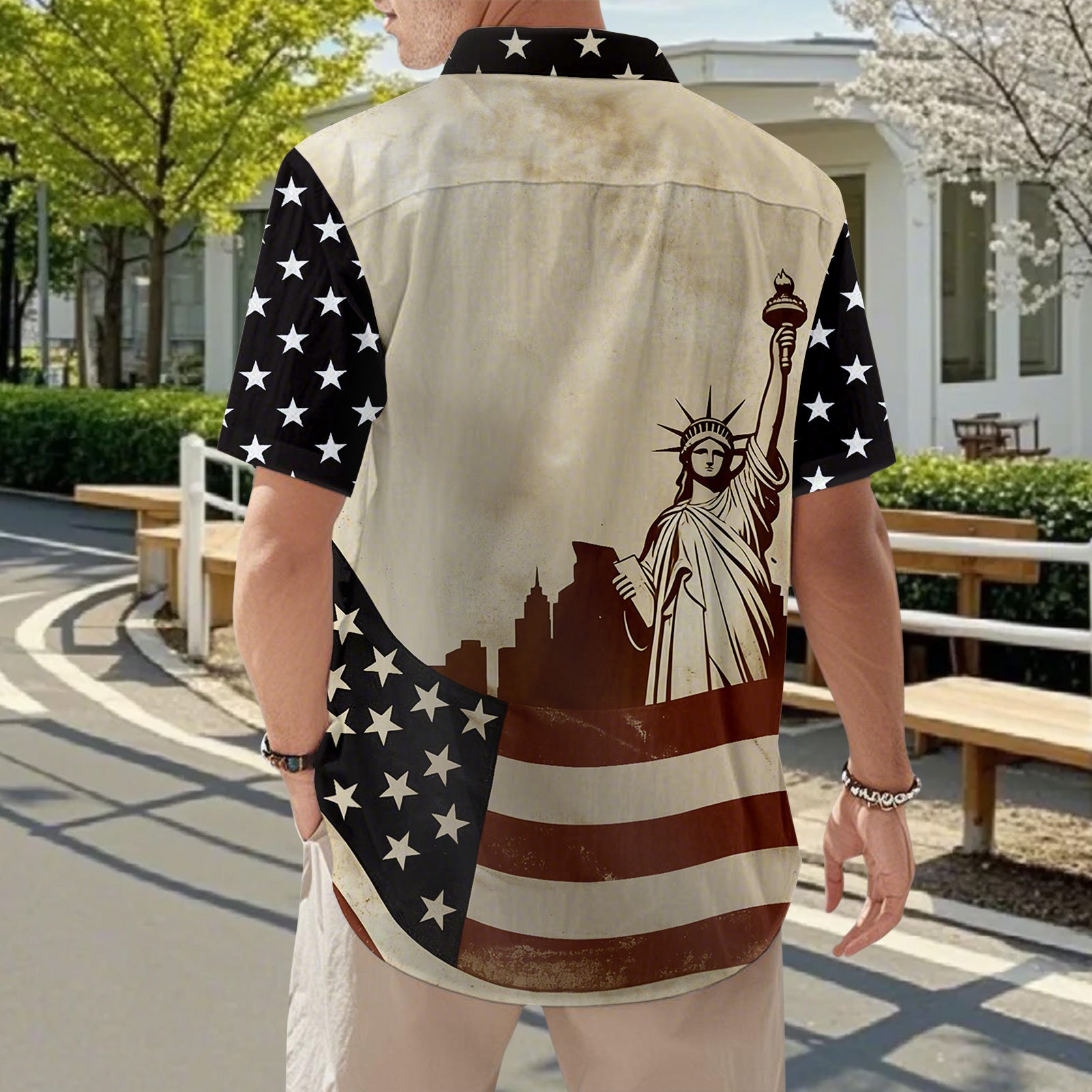 The Hawaiian American Flag Shirt Button Down Patriotic Tops combines style and patriotism for versatile daily wear and special occasions. Designed with a classic button-down structure, this shirt showcases the iconic Hawaiian and American flag patterns, making it an ideal choice for expressing national pride. Its comfortable fabric ensures ease of movement, while the vibrant print stays eye-catching in various settings. Perfect for holidays, casual outings, or themed events, this patriotic top adds a unique touch to your wardrobe. Welcome the spirit of freedom and culture effortlessly with this distinctive Hawaiian American flag shirt, crafted to suit diverse lifestyles and fashion preferences.