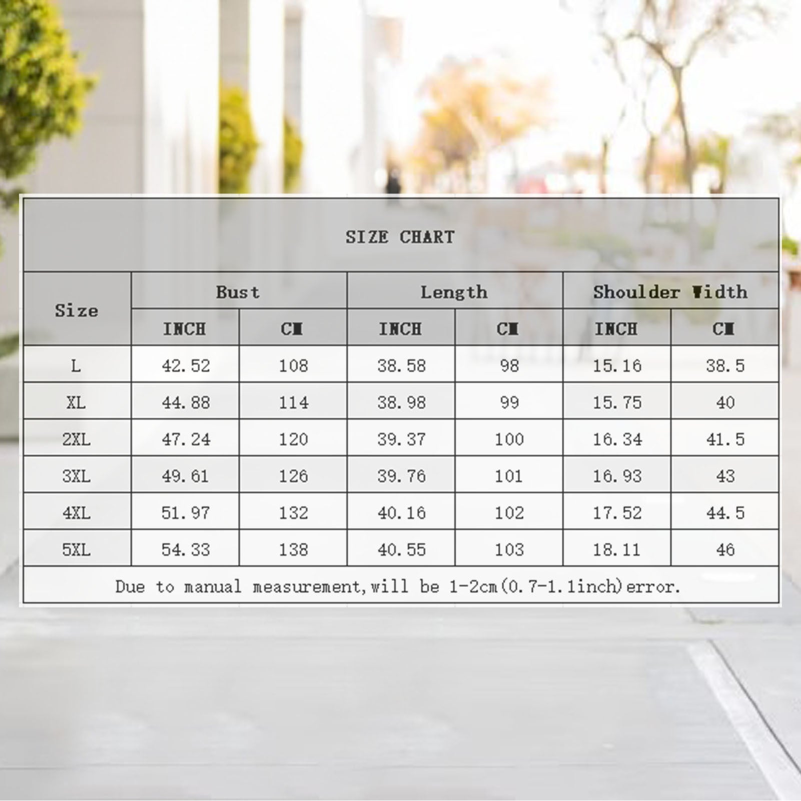 2. Due to different manual measurements, please allow a 1-2cm difference in size.