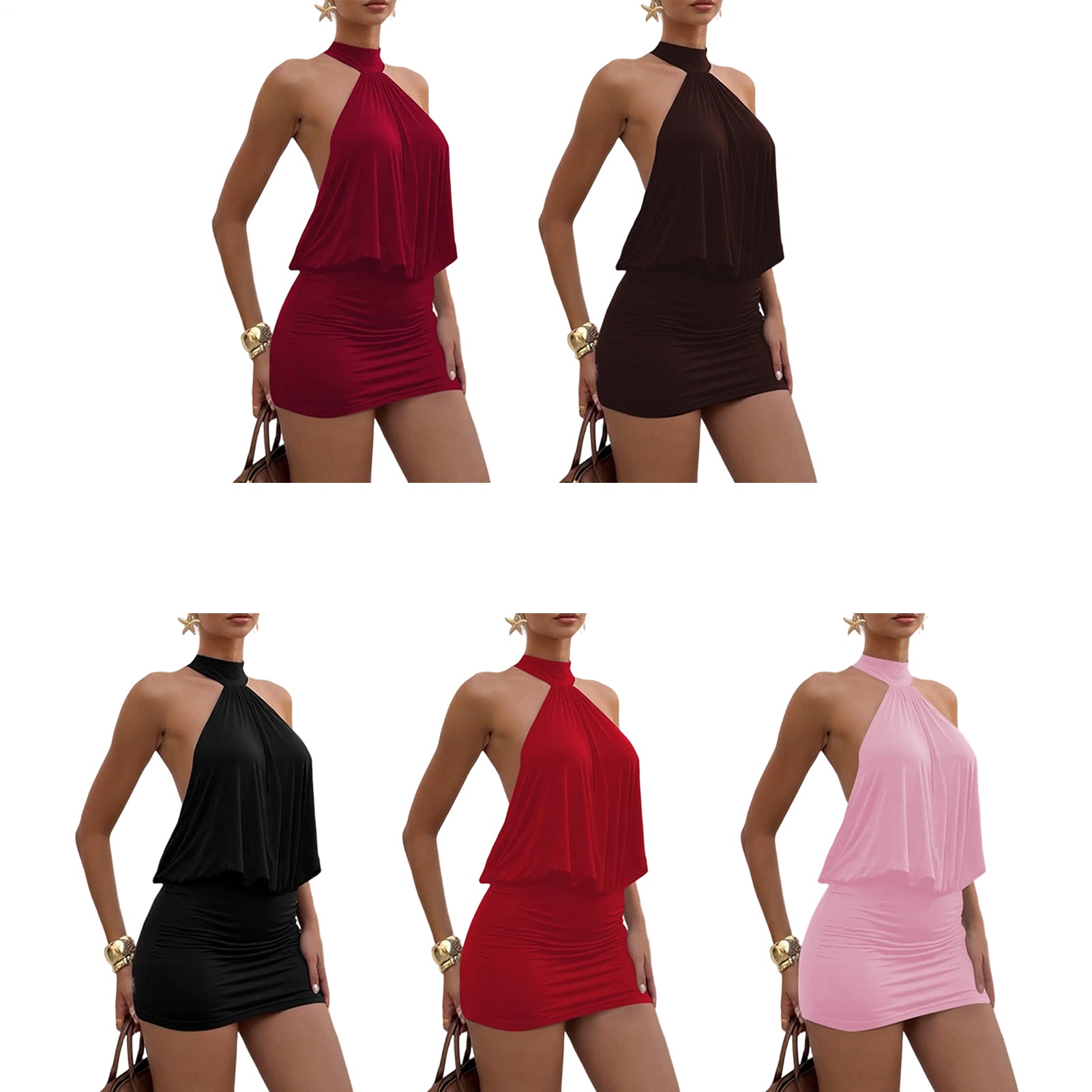 Short Halter Dress Sexy Summer Bodycon Club Party Going Out Dress for Club Beach Vacation Dating Evening frugal