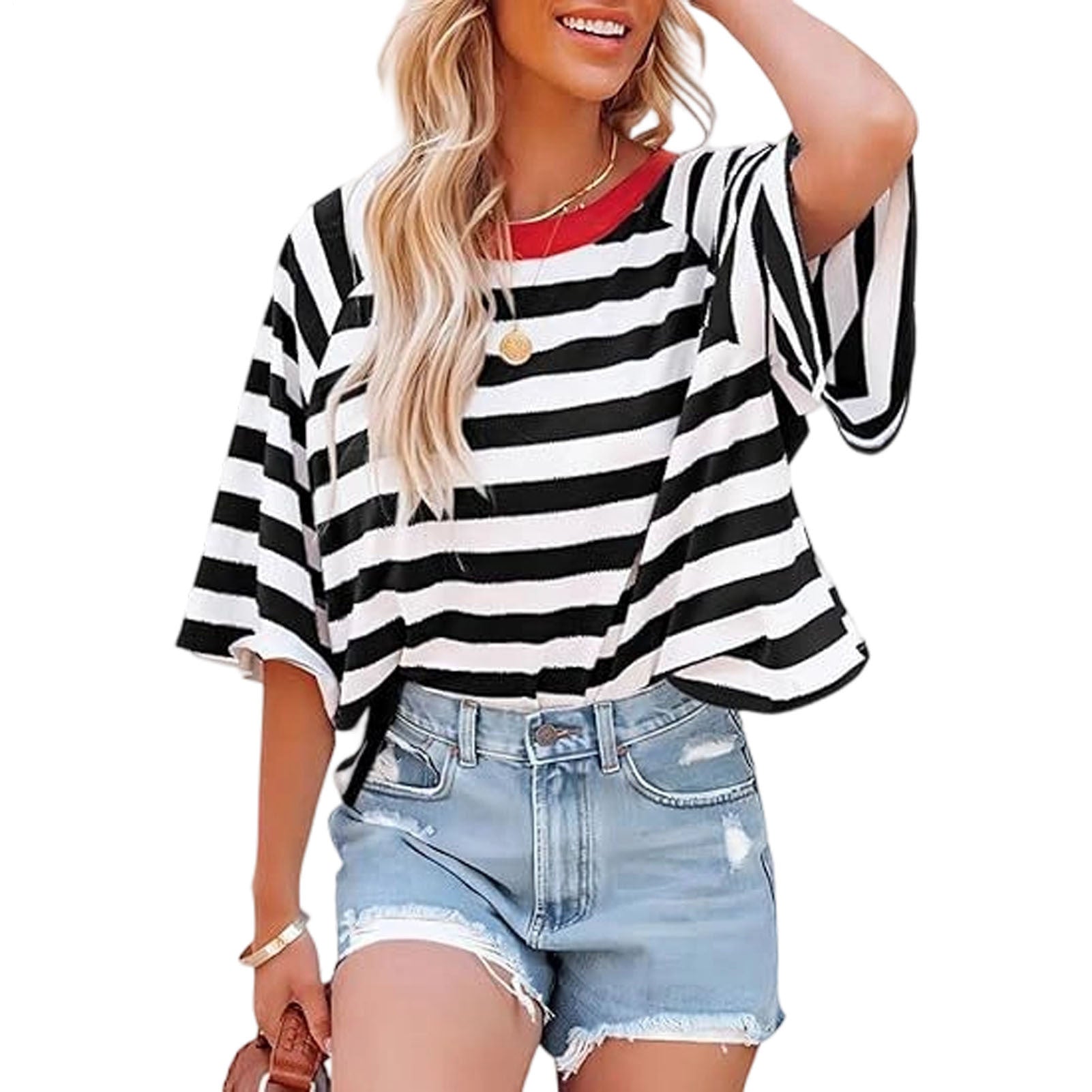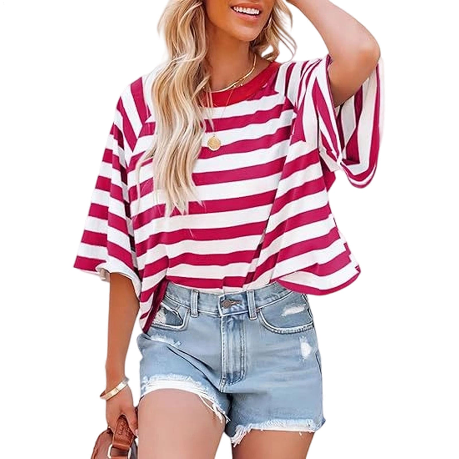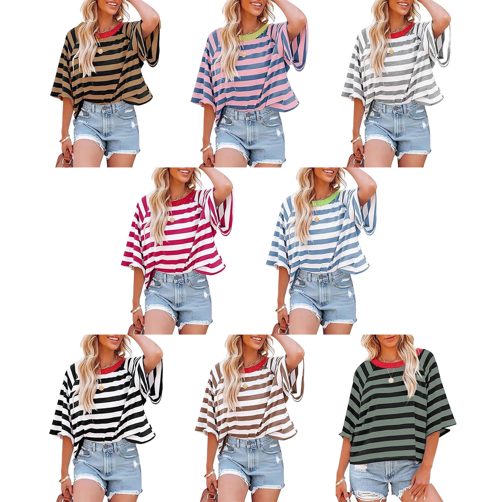 Striped Shirt Women Crew Neck Fashion Casual T Shirts Loose Fit Basic Tops for Travel Going Out Commuting approving