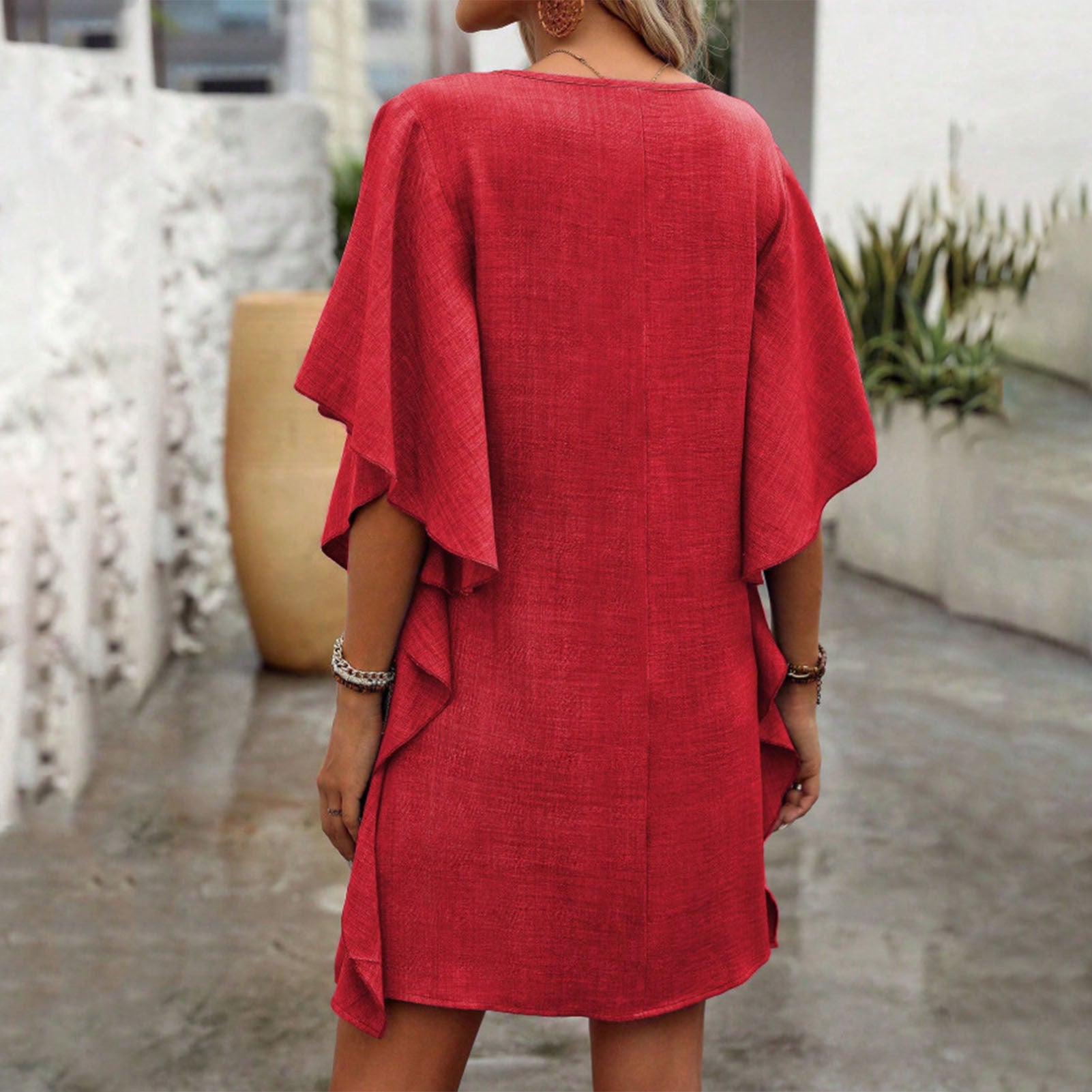 V Neck Ruffle Dress Summer Fashion Ruffle Short Sleeve Casual Shift Dress for Beach Vacation Daily Wear gifts