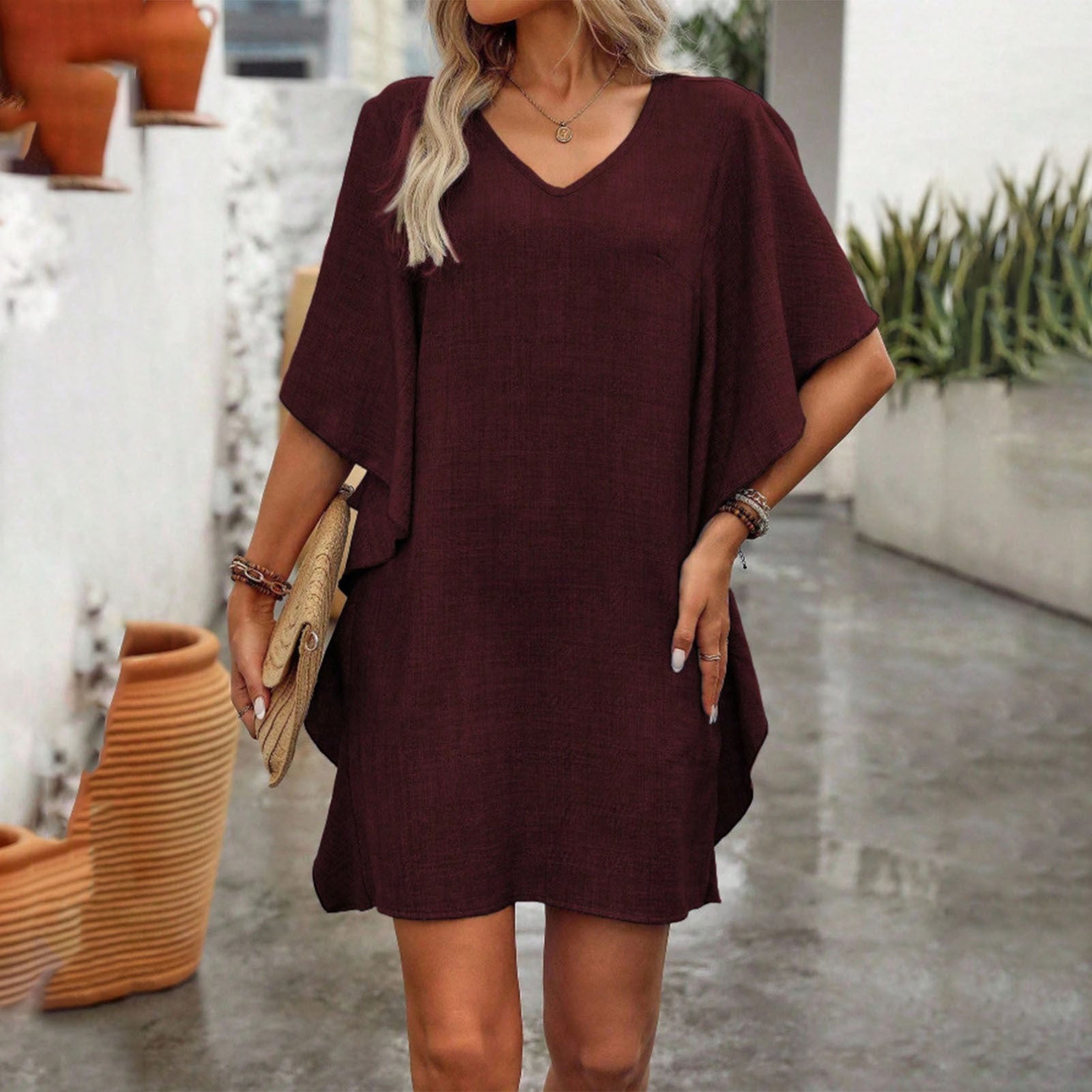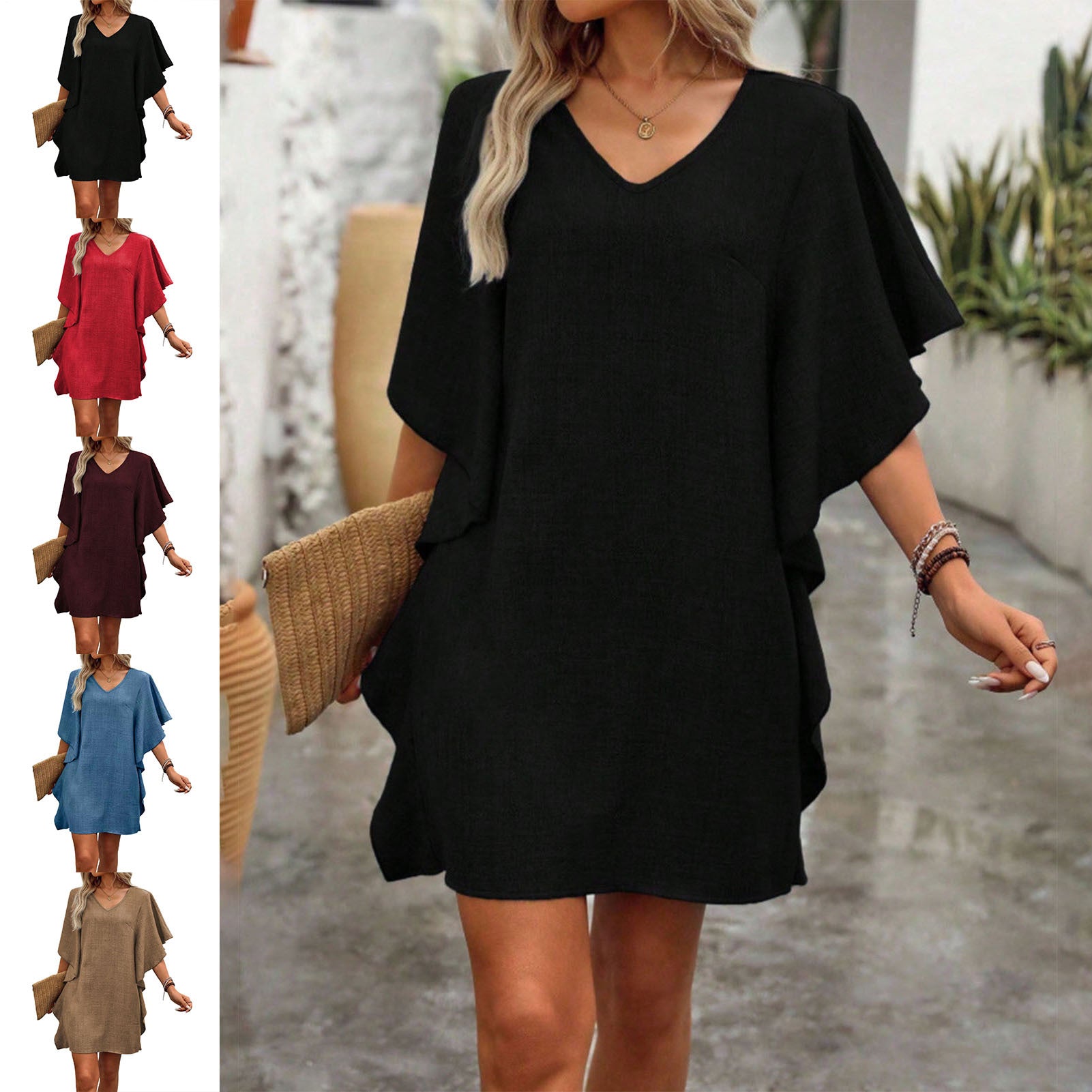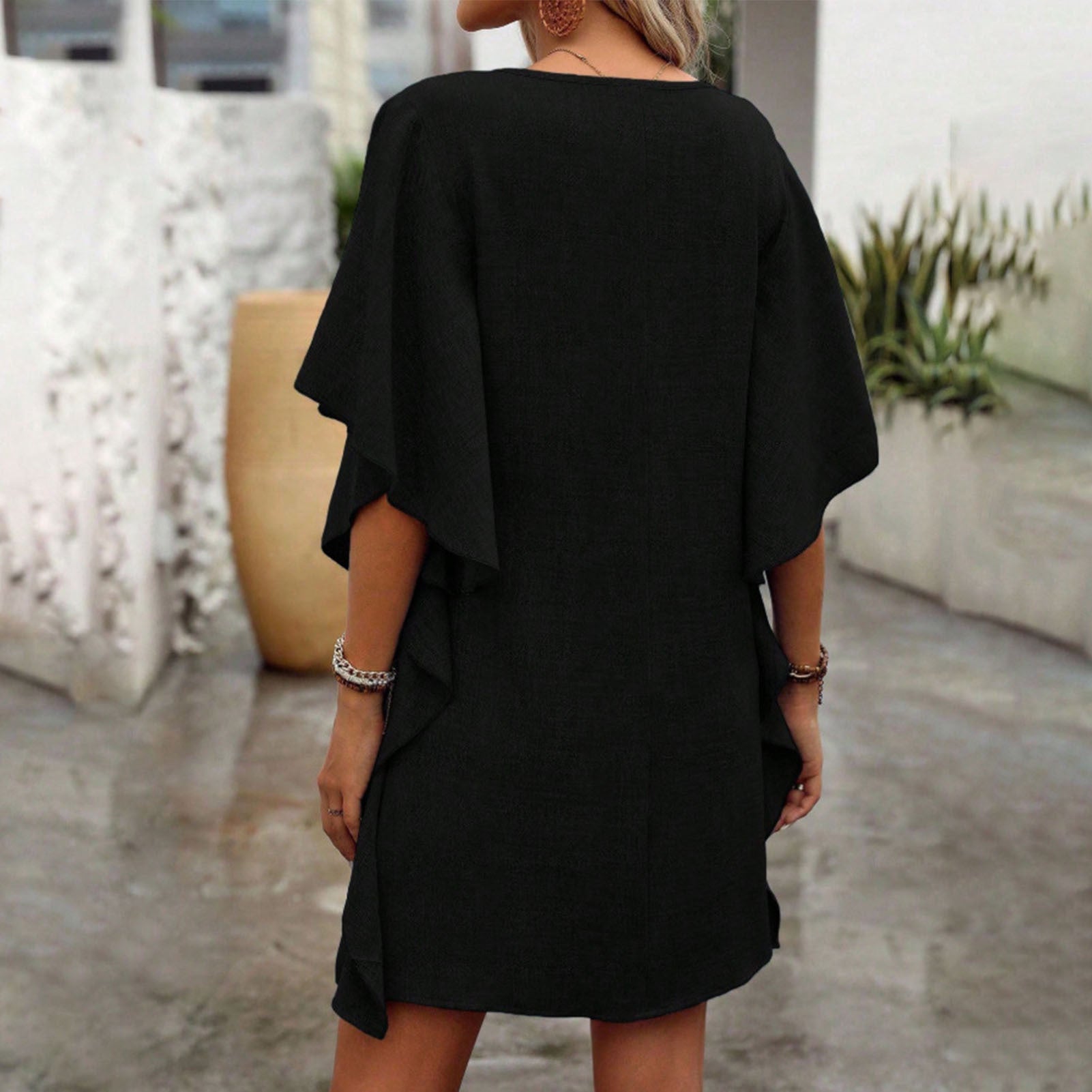 The Fashion Ruffle Short Sleeve Casual Shift Dress is designed to offer both style and comfort for various occasions. This versatile dress features a charming ruffle detail and a relaxed shift silhouette, making it an ideal choice for vacation getaways, daily wear, or leisurely shopping trips. Its casual yet fashionable design ensures effortless elegance while maintaining ease of movement throughout the day. Crafted with attention to detail, this dress transitions seamlessly from daytime errands to evening outings. The breathable fabric enhances comfort, ensuring you stay at ease in any setting. Whether exploring new destinations during vacation or having a casual day of shopping, this short sleeve shift dress keeps you looking chic and feeling confident. Welcome timeless appeal with the Fashion Ruffle Short Sleeve Casual Shift Dress, your go-to option for everyday sophistication and practicality.