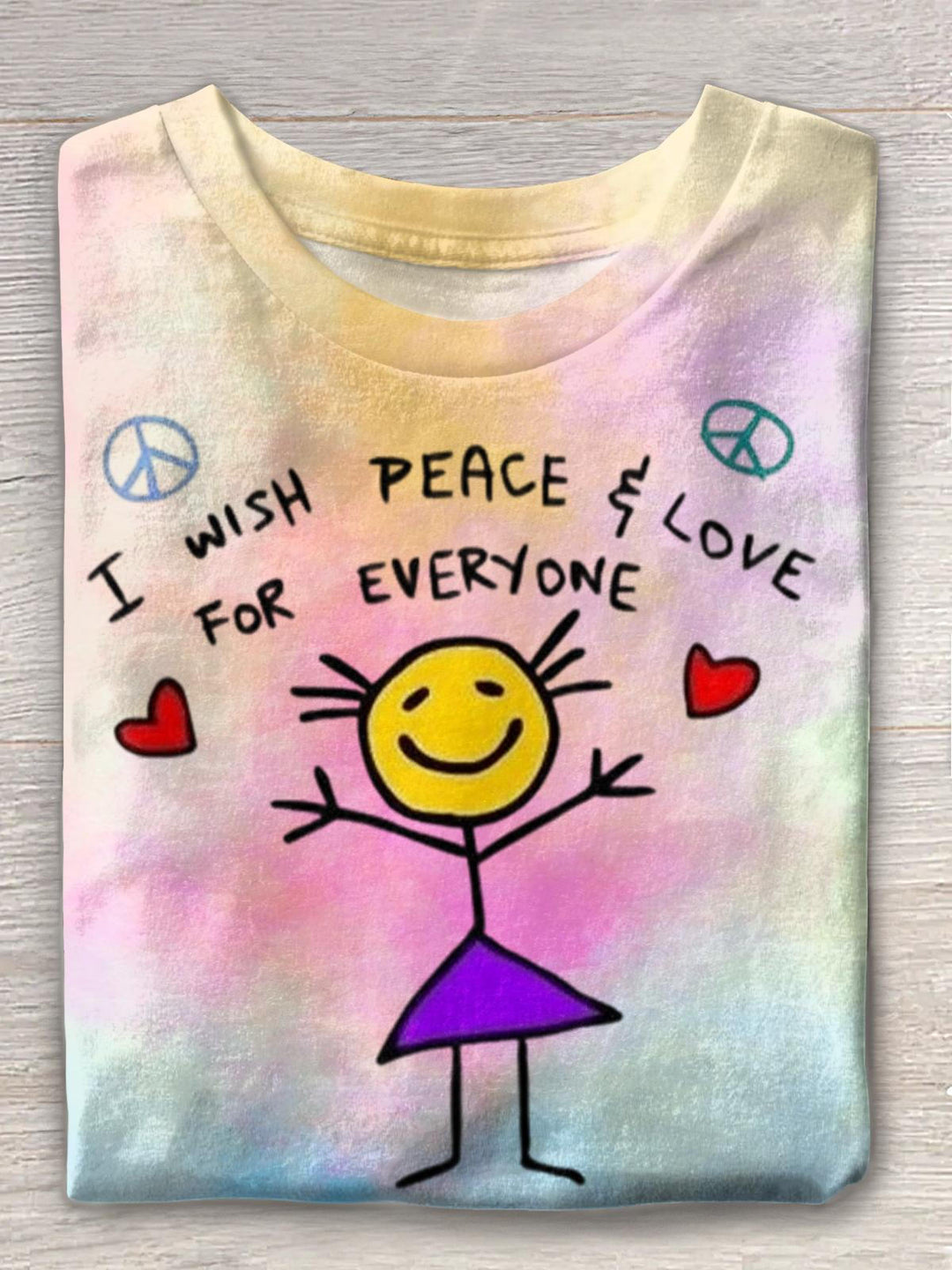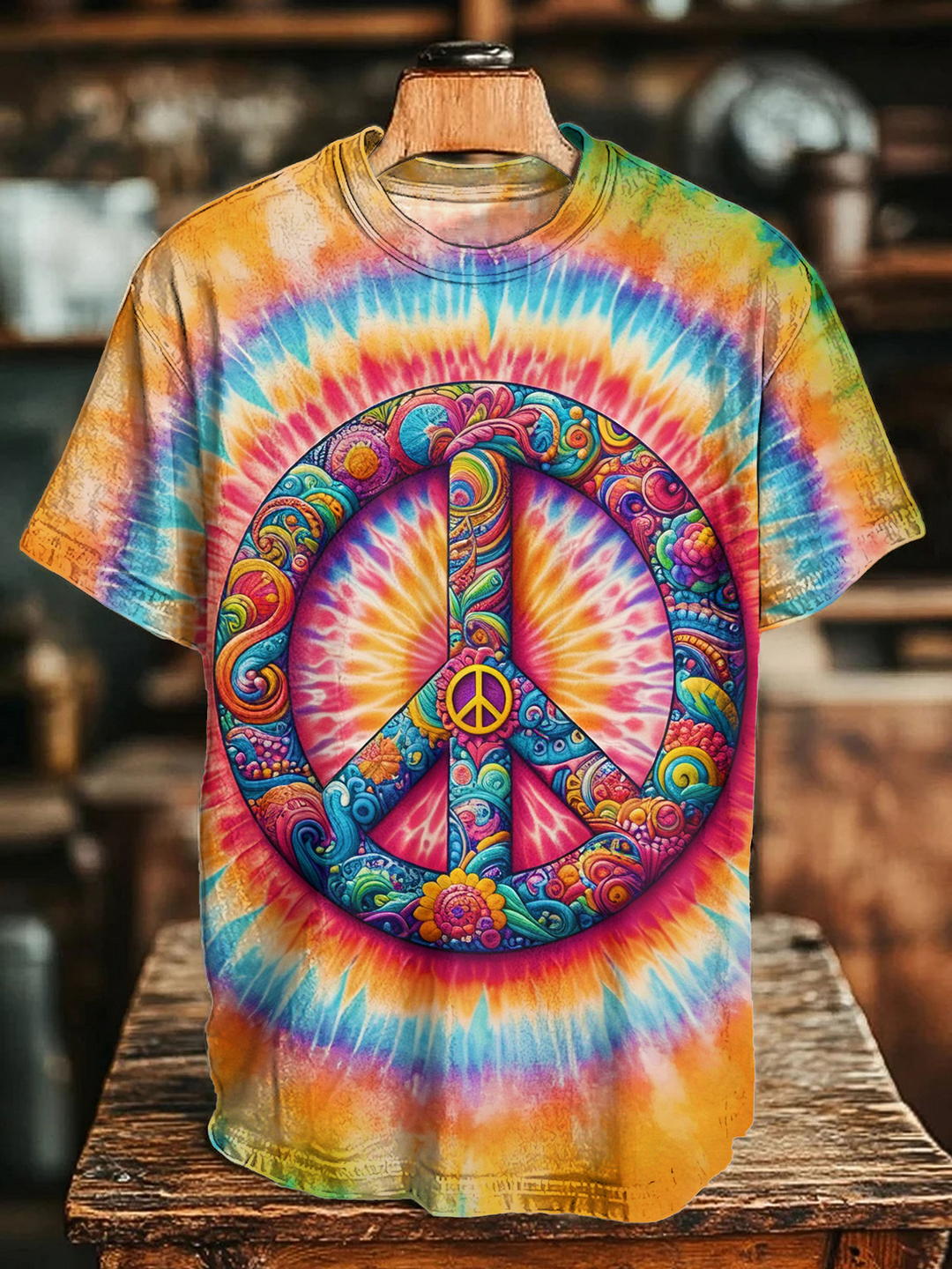 Retro Tie-dye Peace Sign Crew Neck T-shirt