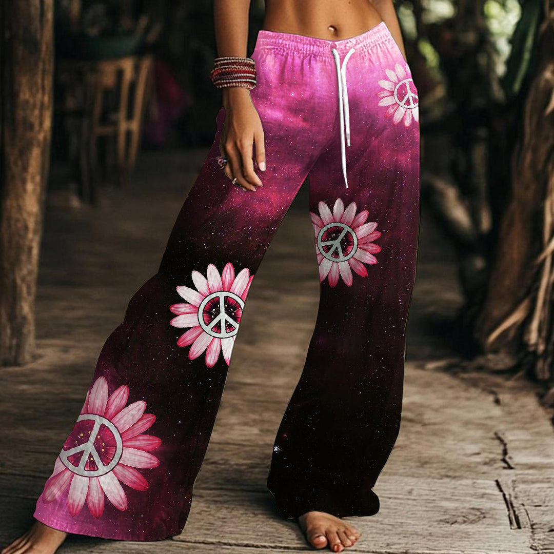 Retro Sage Hippie Flower Women's Drawstring Wide-Leg Pants
