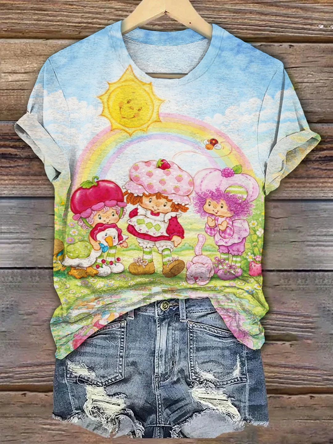 Retro Rainbow Strawberry Sweetheart Crew Neck T-shirt