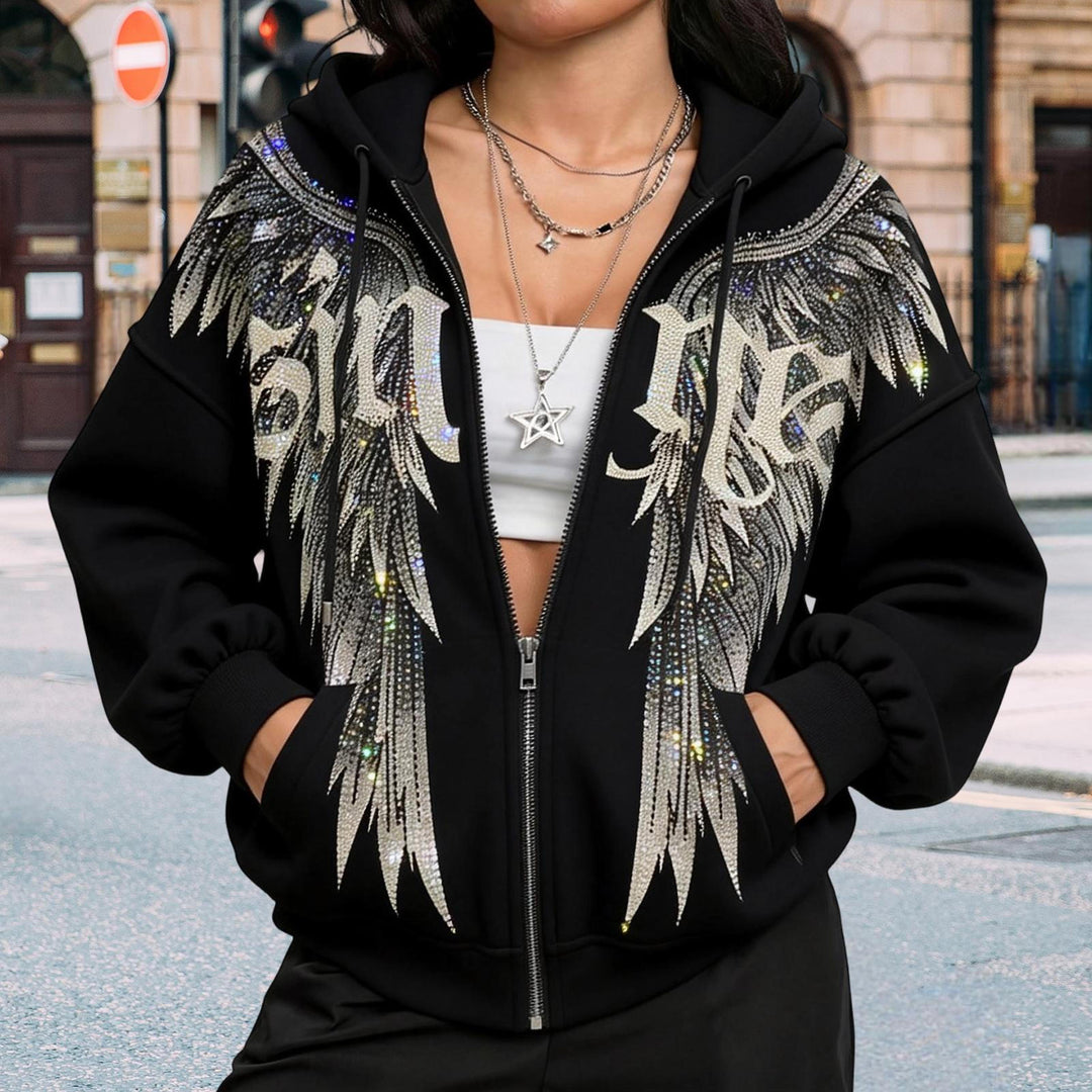 Angel Wing Hoodie Zip Up Womens Casual Graphic Hoodie Sweatshirt with Sparkly Wings for Daily Wear Party high grade