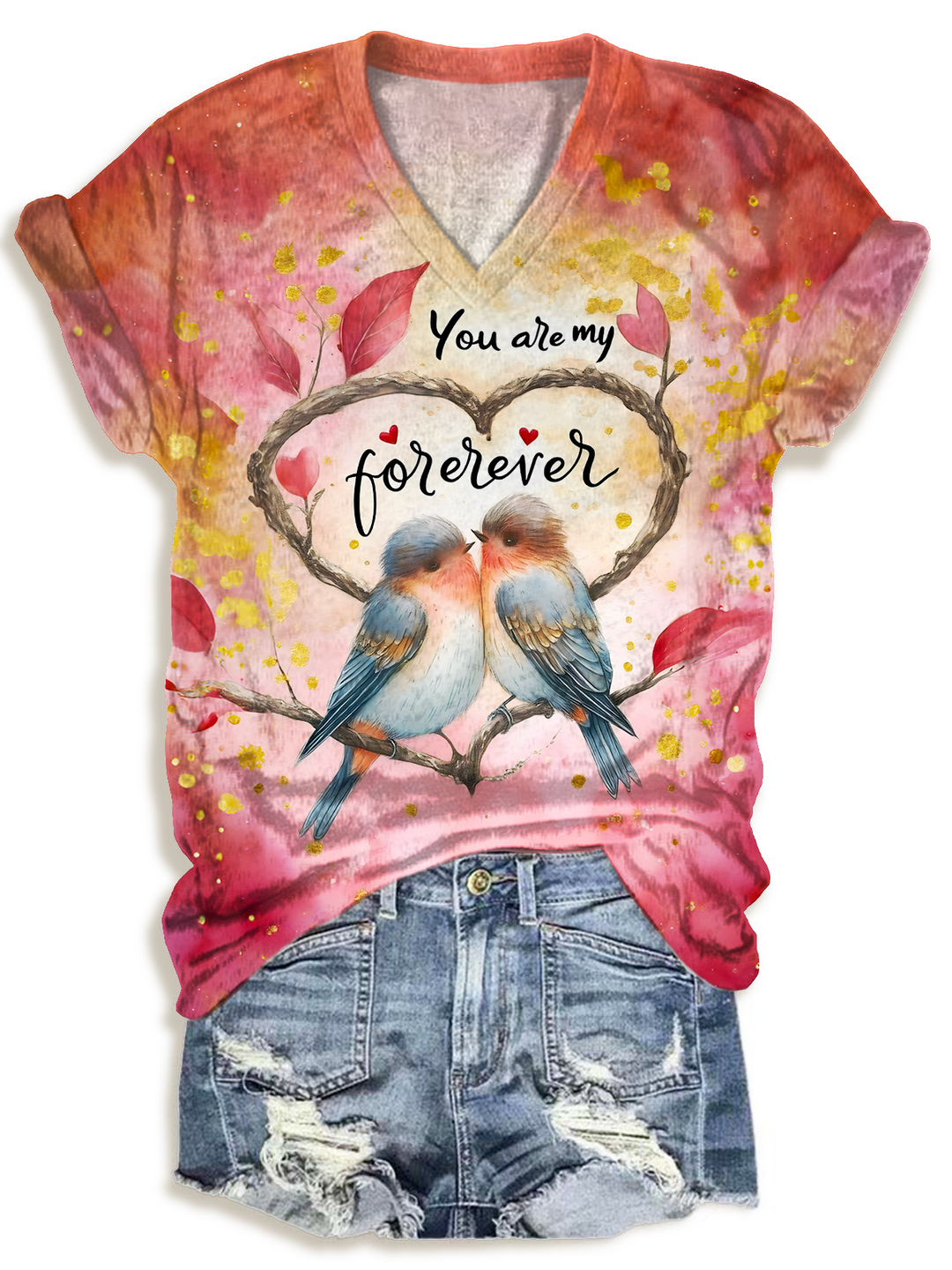 Valentine's Day Print V-Neck T-Shirt
