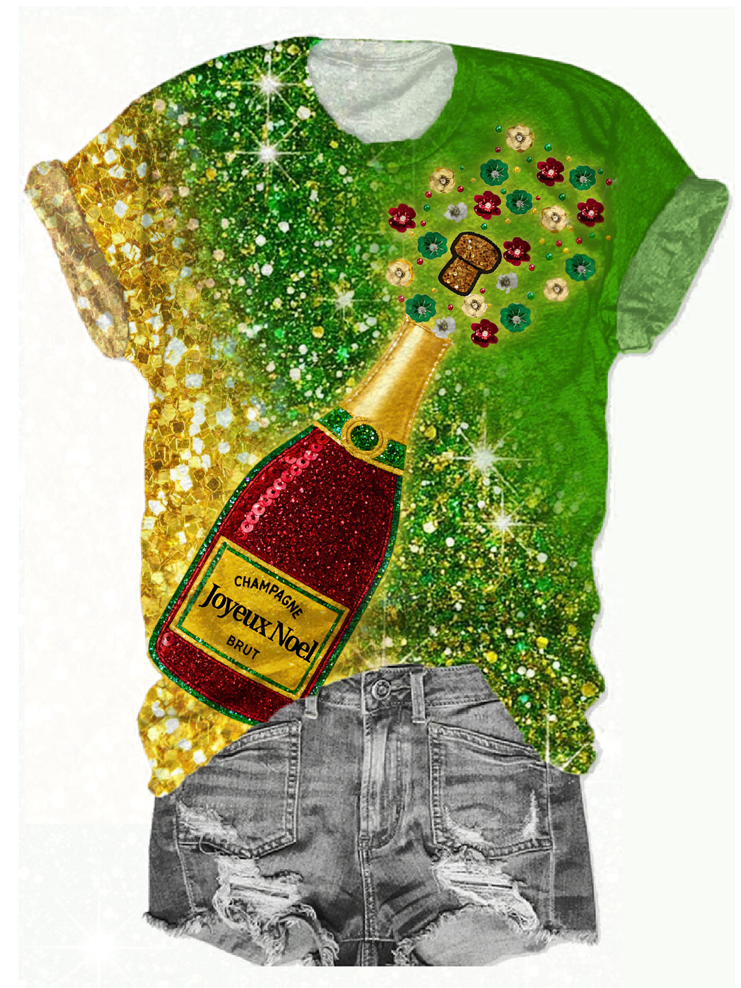 Mardi Gras Champagne Print Print Crew Neck T-Shirt