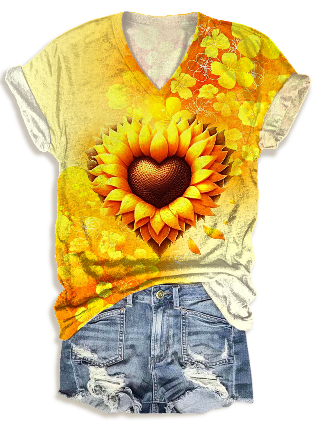 Valentine's Day Sunflower Heart Print V-Neck T-Shirt