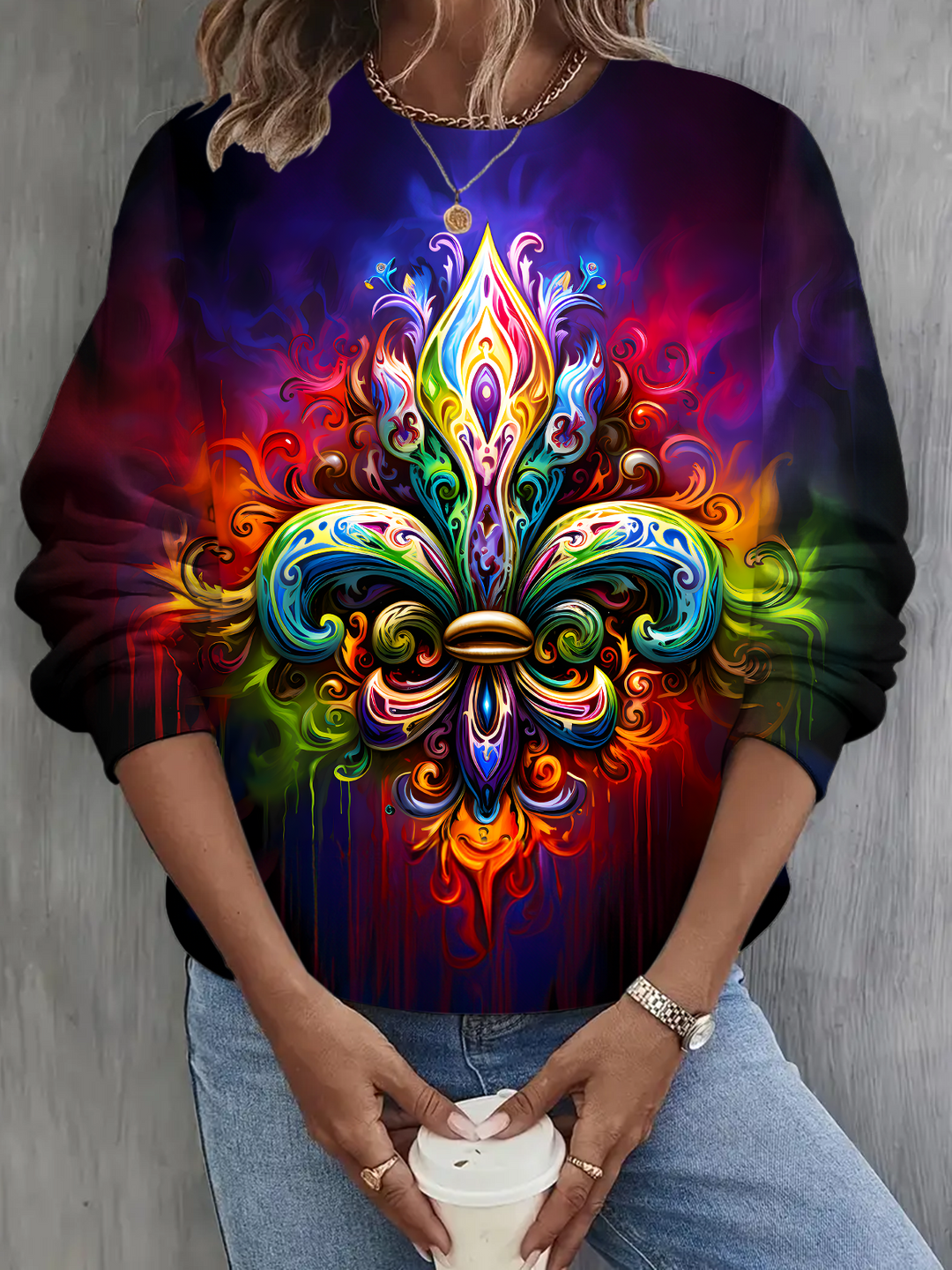 Mardi Gras Cartoon Color Print Long Sleeve Casual Top