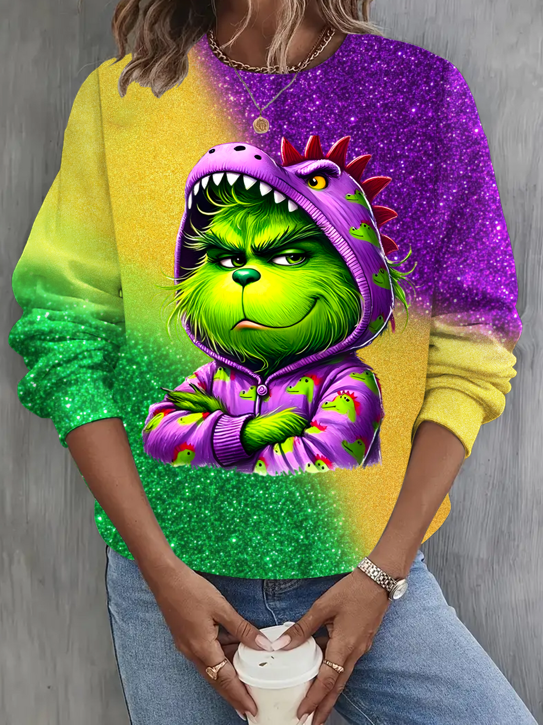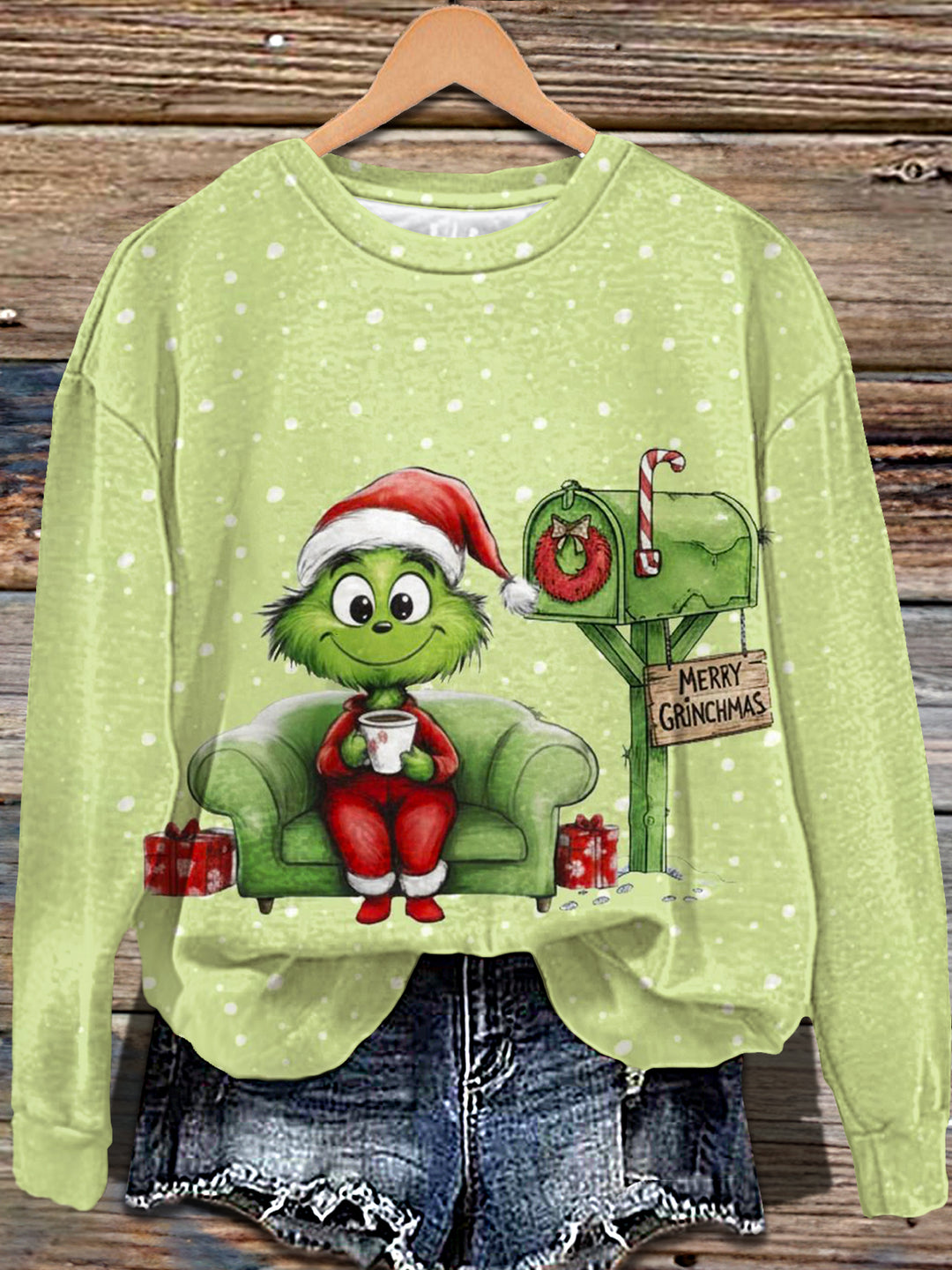 Winter Grinch Printed Long Sleeve Casual Top