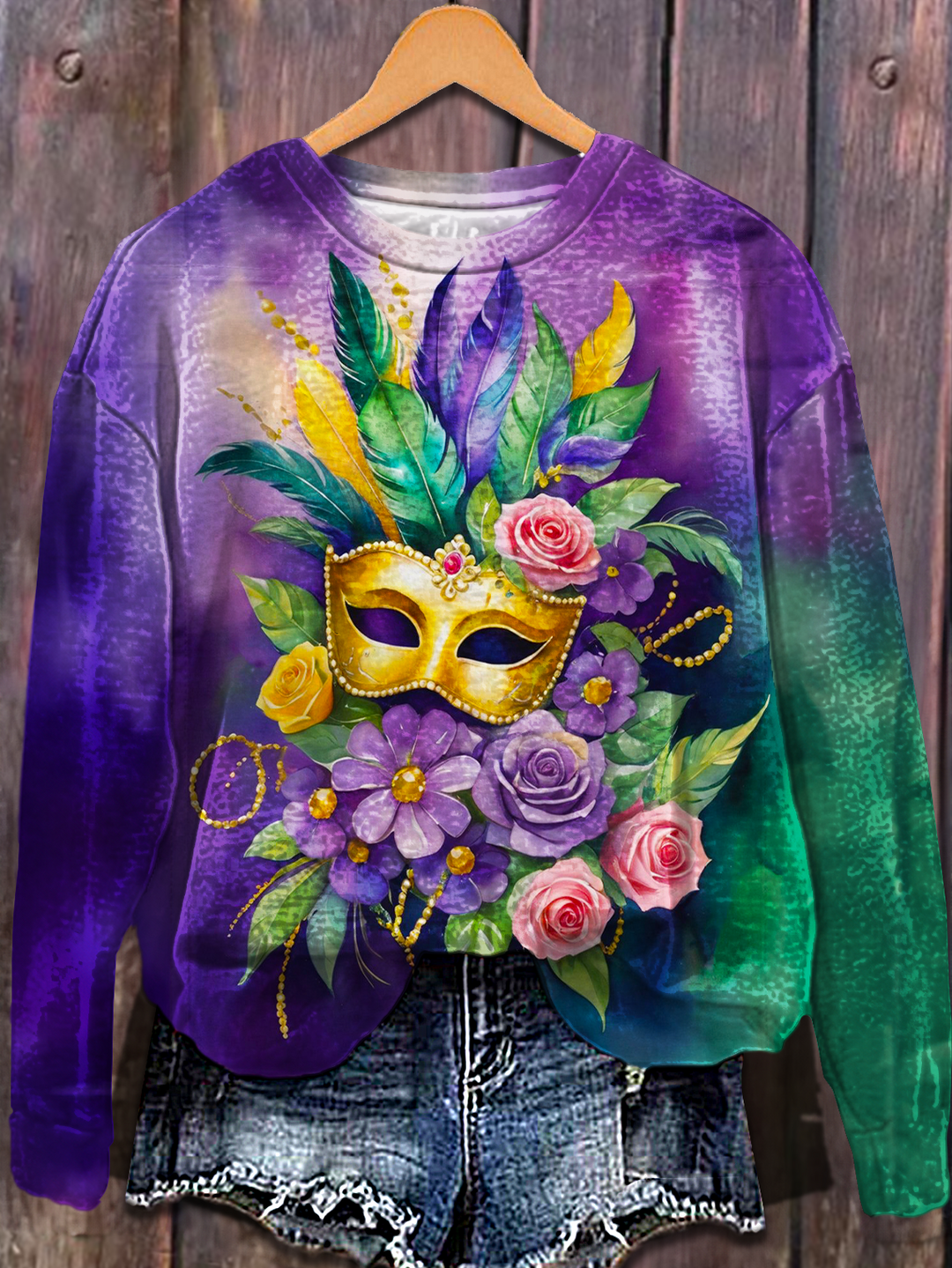 Carnival Mask Floral Long Sleeve Casual Top