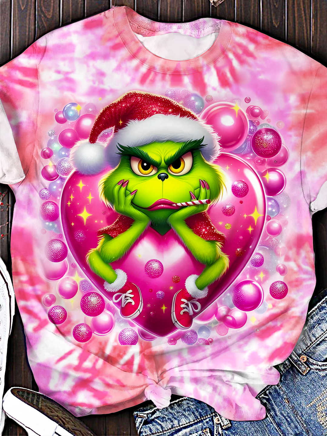 Valentine's Day Romantic Grinch Print Print Crew Neck T-Shirt