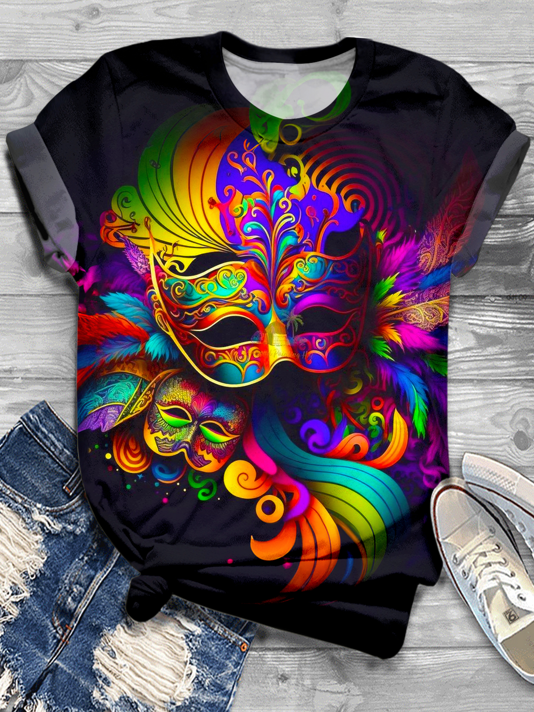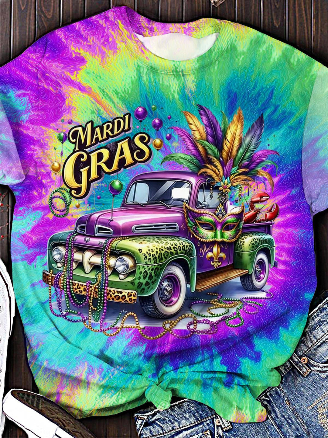 Mardi Gras Prints Crew Neck T-Shirt