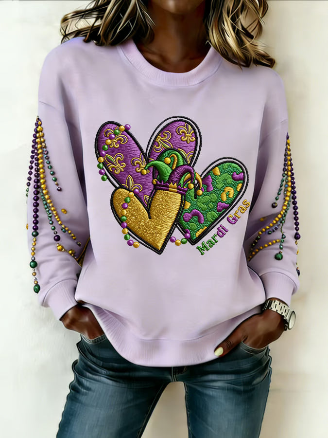 Mardi Gras Love Long Sleeve Casual Top