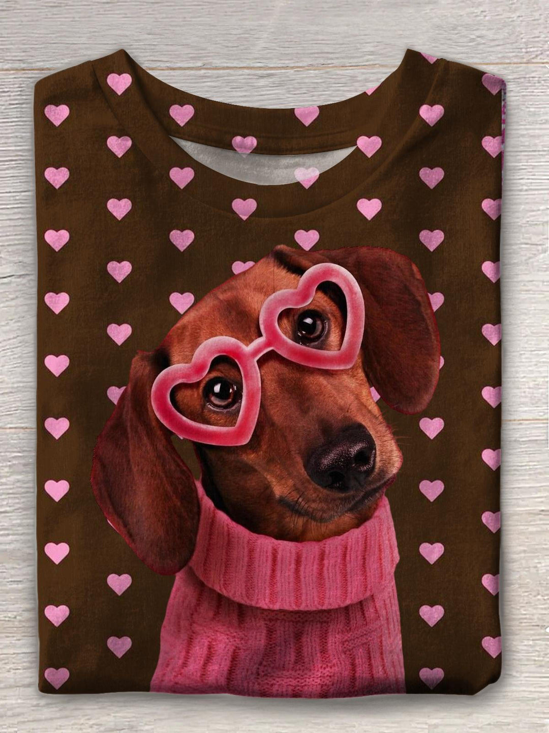 Valentine's Day Cute Sausage Dog Crew Neck T-shirt