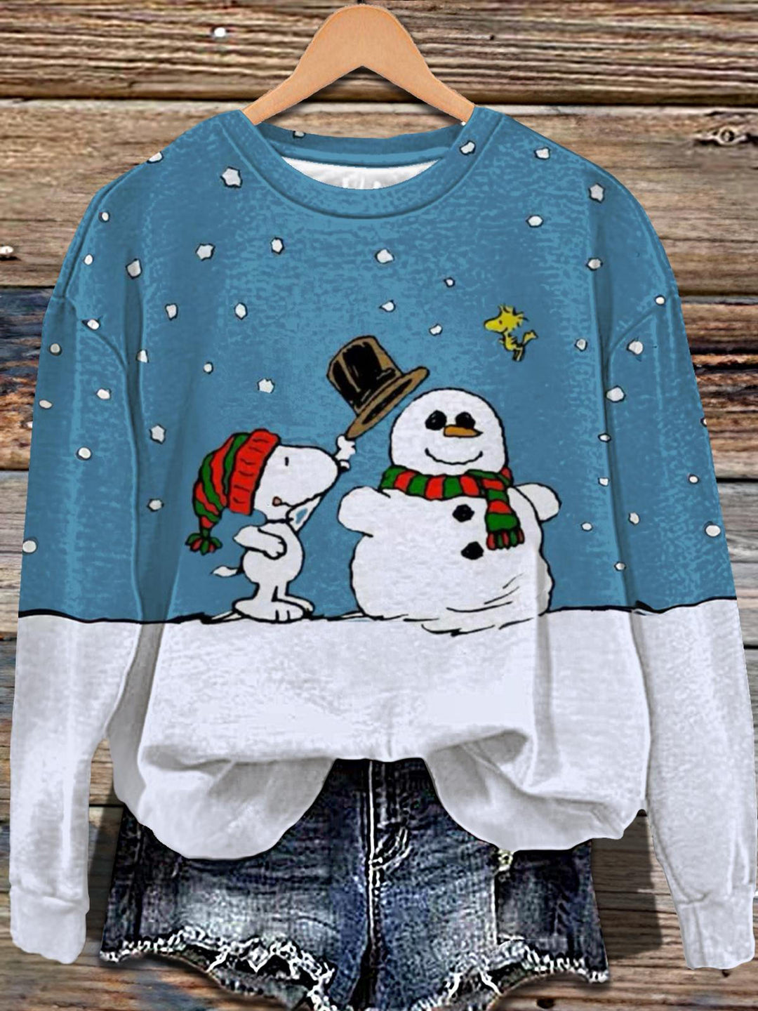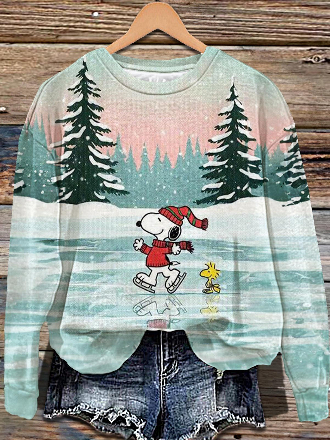 Winter Snoopy Printed Long Sleeve Casual Top