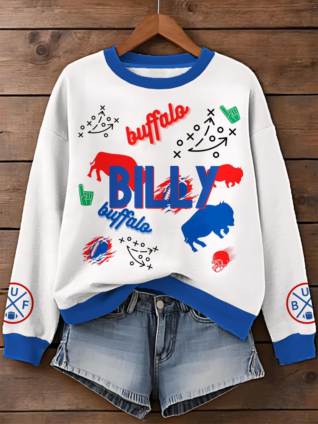 Bills Football Printed Long Sleeve Casual Top