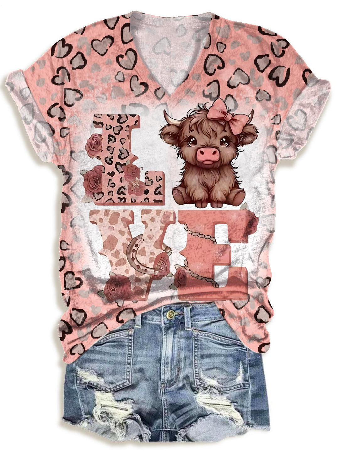 LOVE Leopard High Ground Cattle V-neck T-Shirt