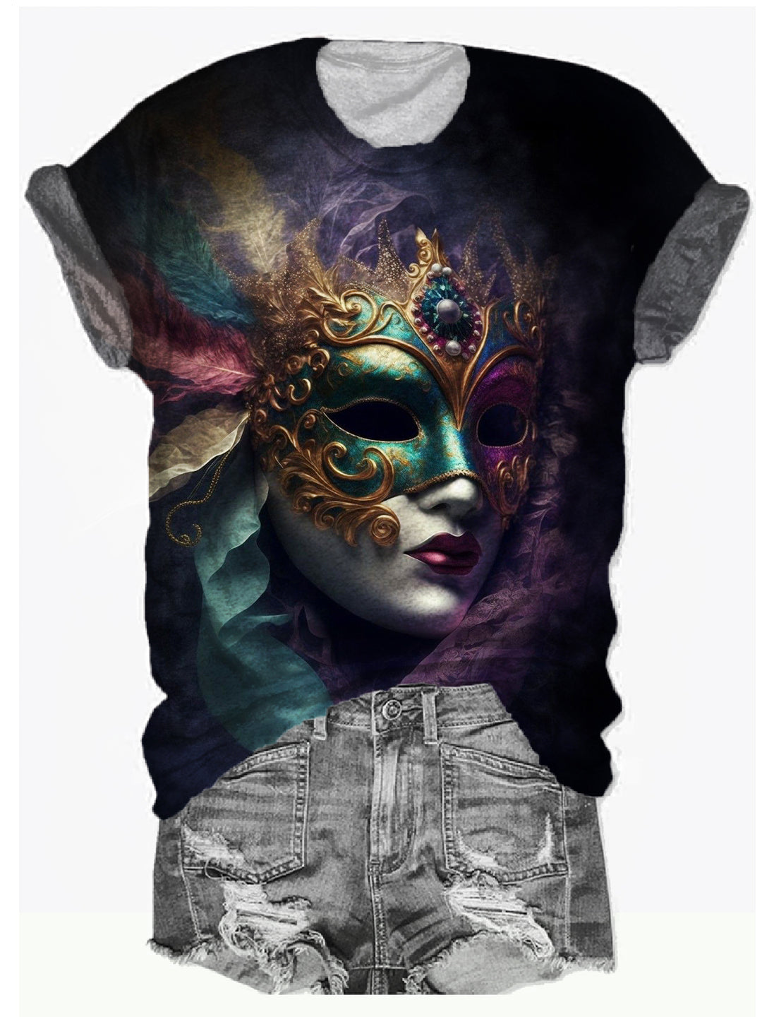 Mardi Gras Mask Crew Neck T-shirt