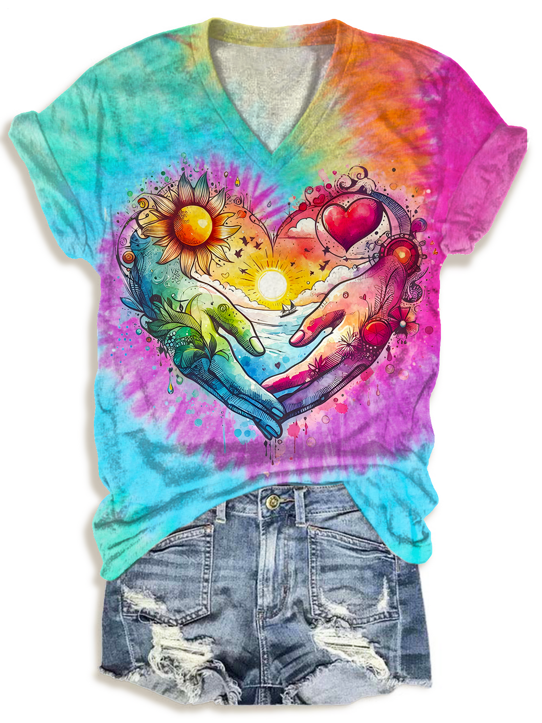 Valentine's Day Greeting Card Print Crew Neck T-shirt