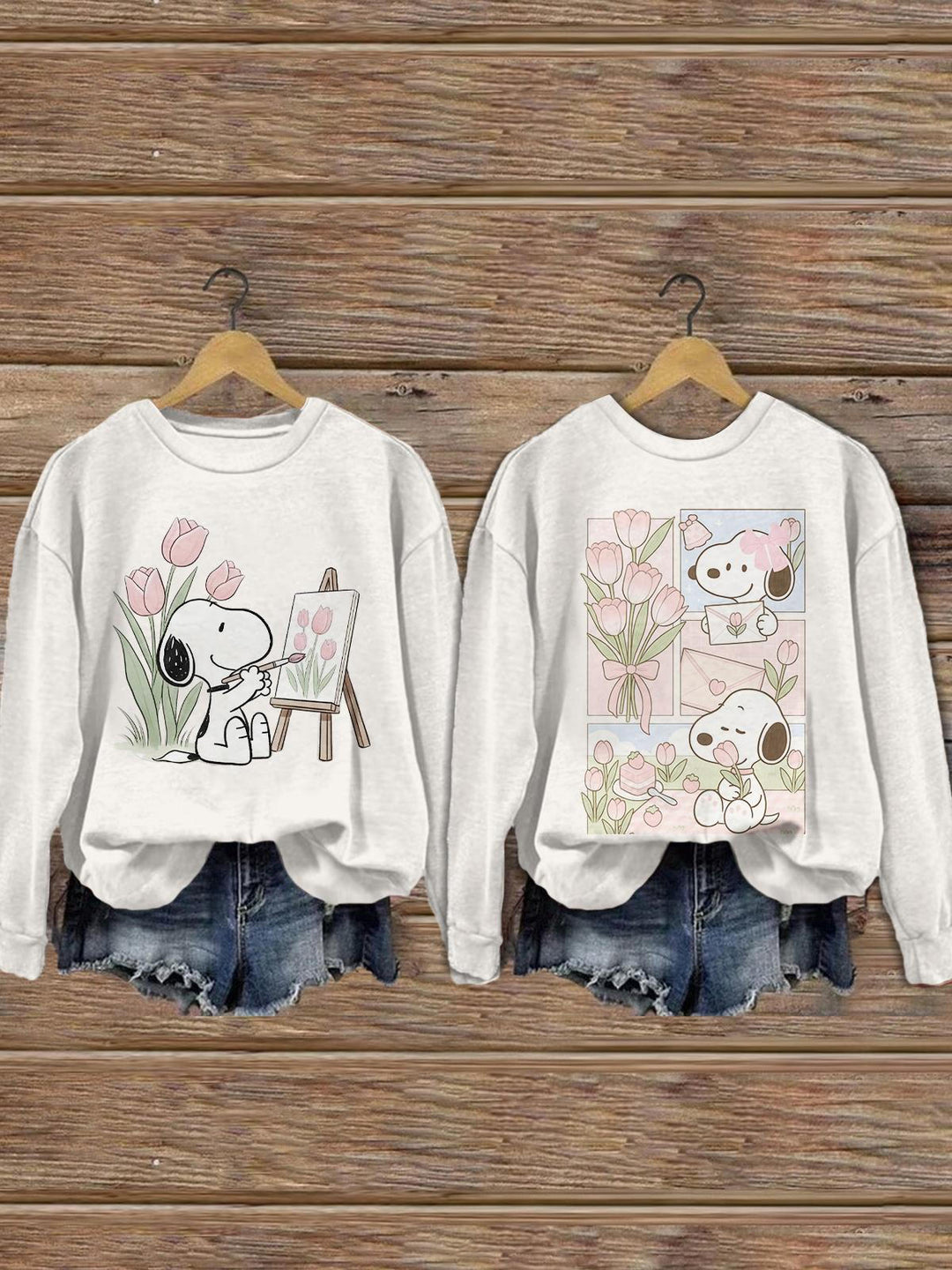 Valentine's Day Romantic Snoopy Printed Long Sleeve Casual Top