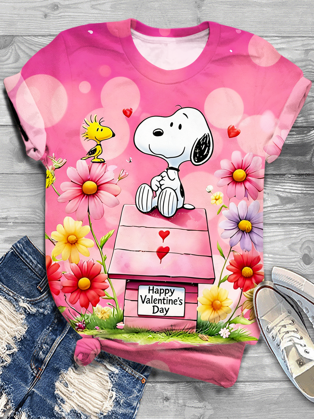 Happy Valentine's Day Snoopy Crew Neck T-shirt