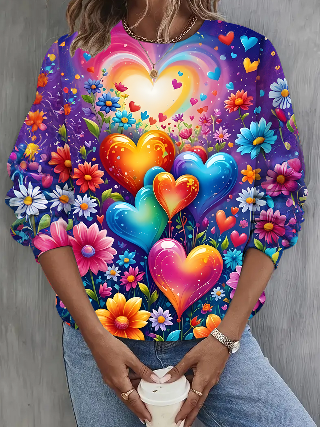 Heart-shaped Balloon And Flower Cartoon Long Sleeve Casual Top
