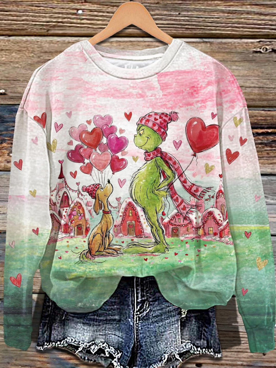 Valentine's Day Grinch Printed Long Sleeve Casual Top