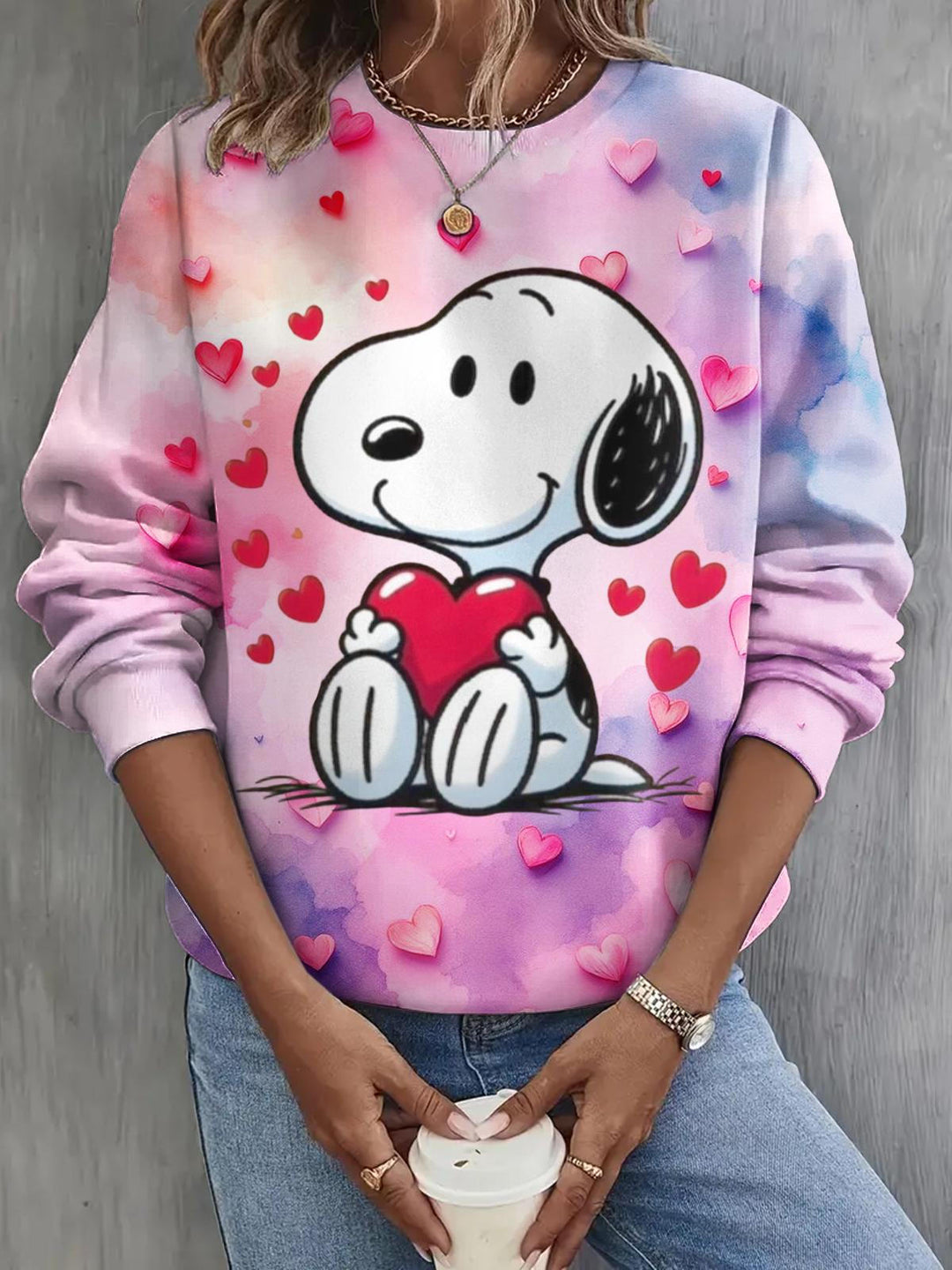 Snoopys Heart Hug Love Printed Long Sleeve Casual Top