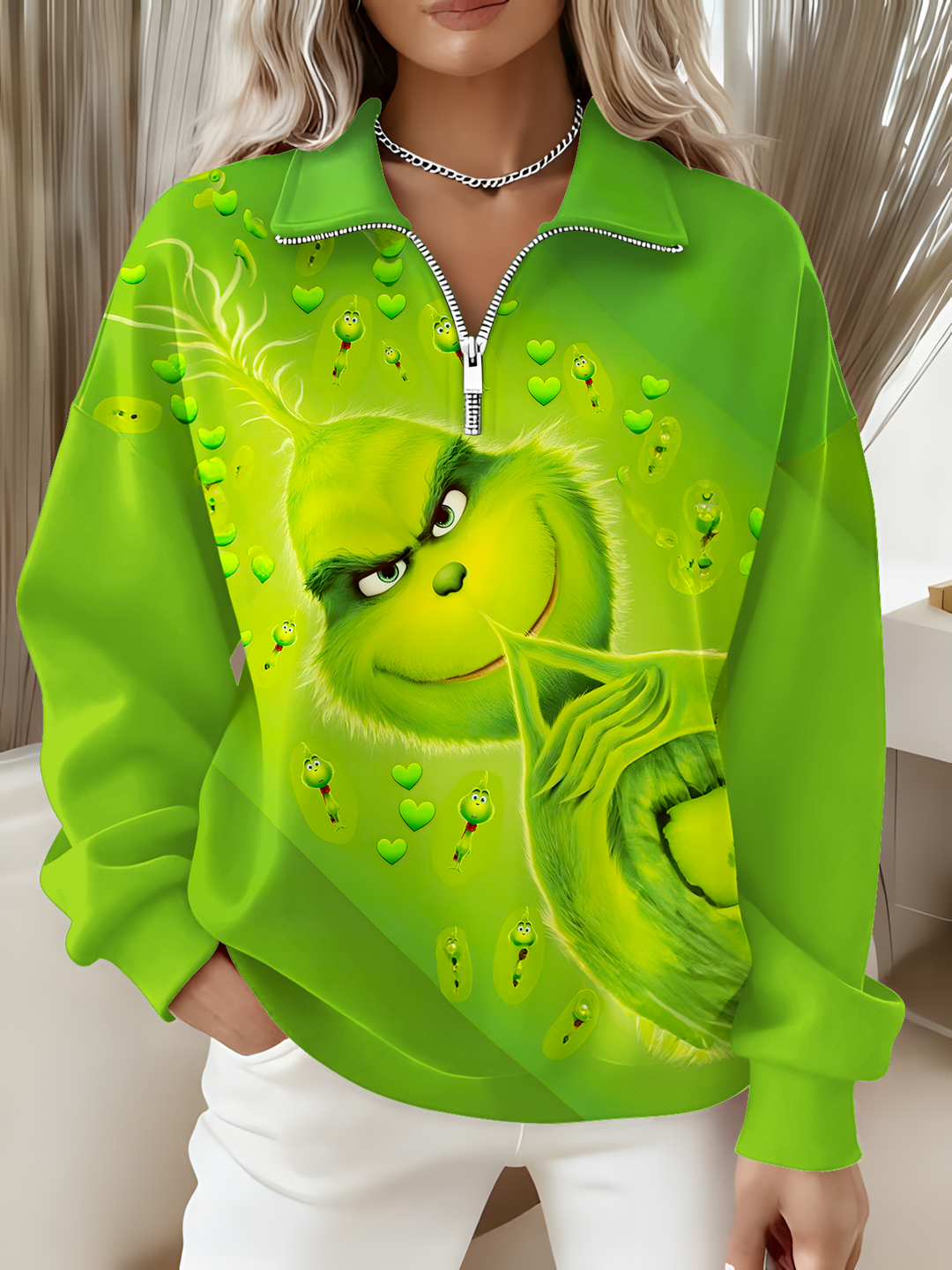 Women's Fun Christmas Grinch Long Sleeve Zipper Sweatshirt
