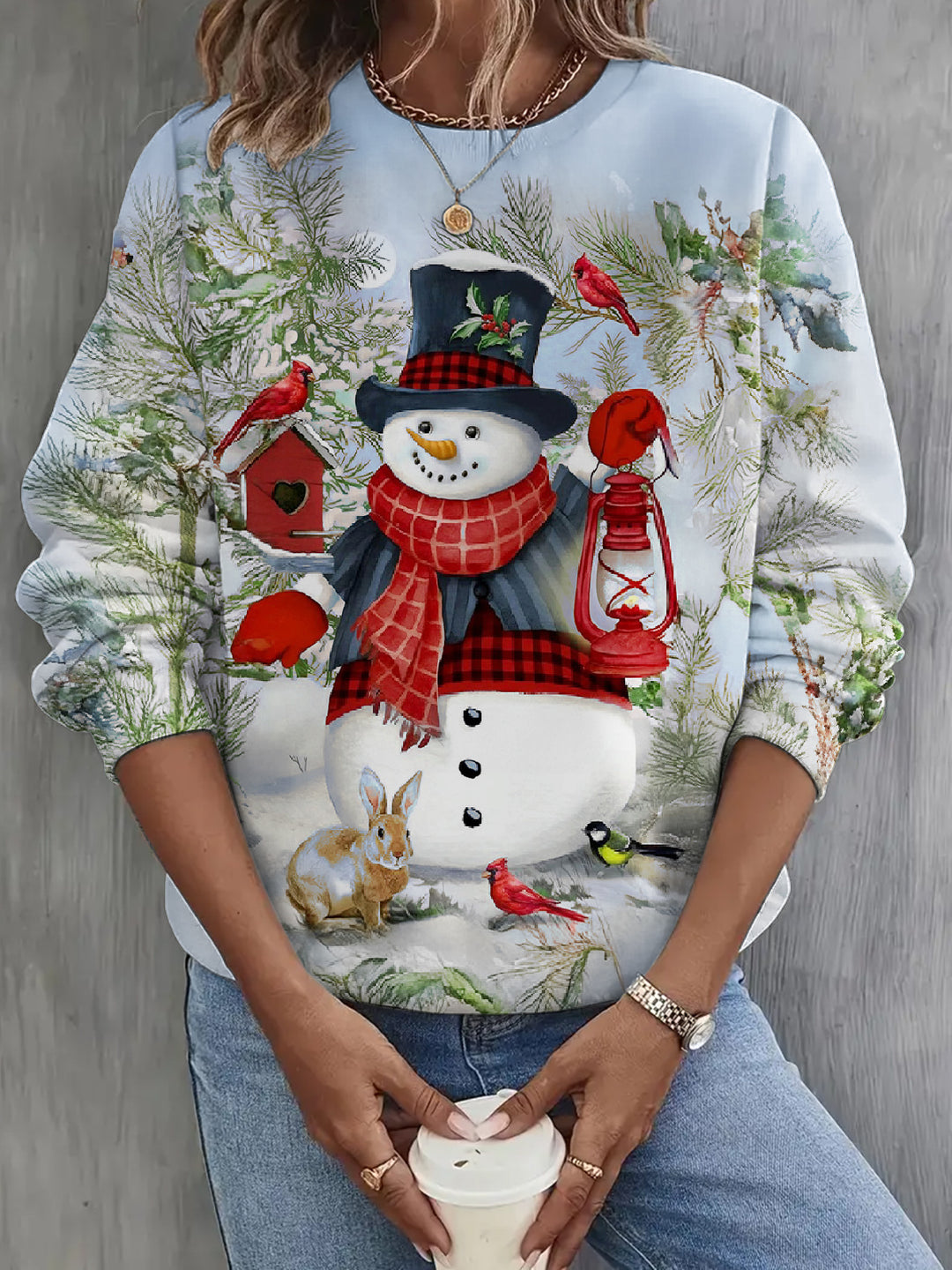 Winter Christmas Snowman Printed Long Sleeve Casual Top