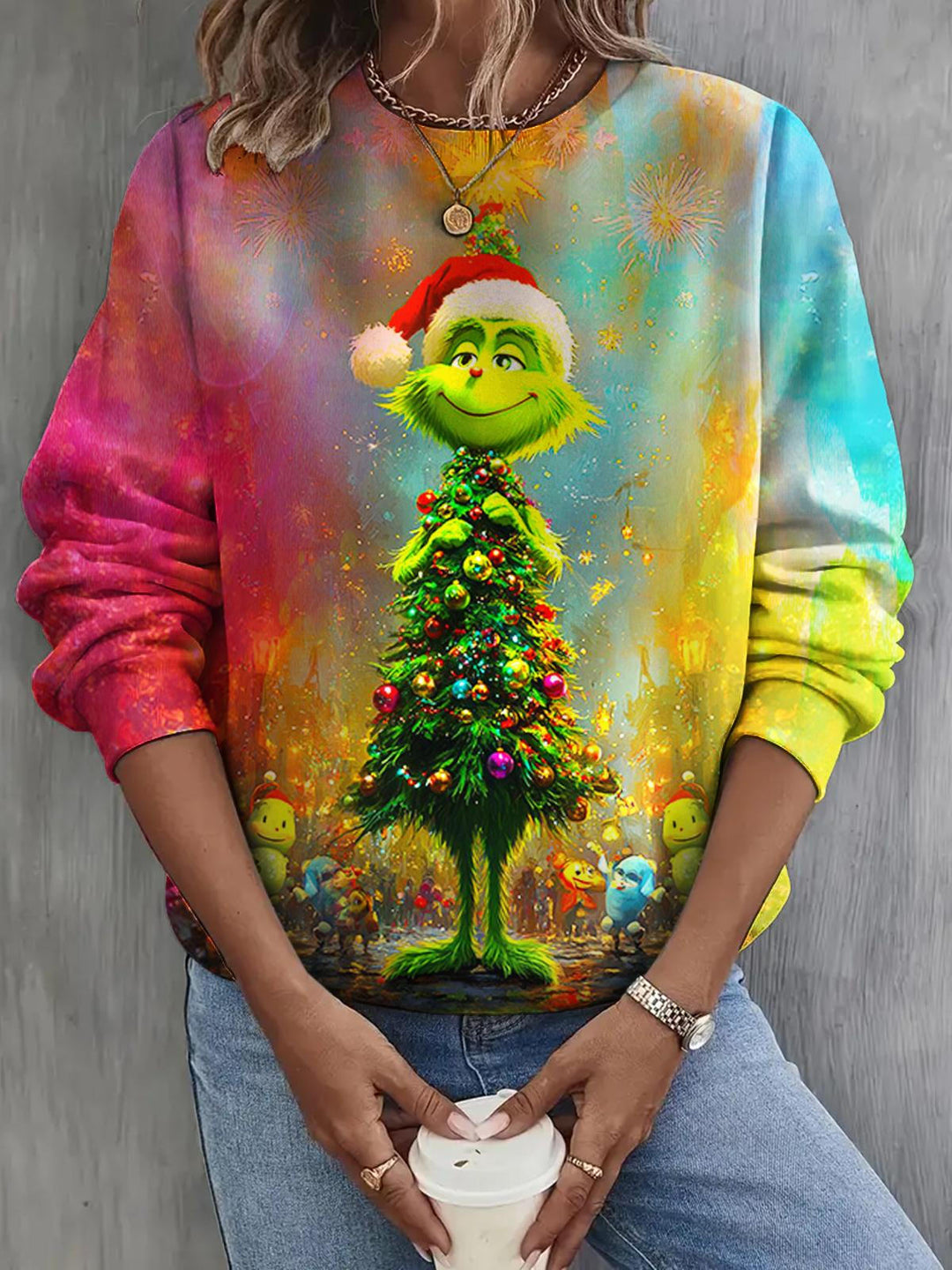 Christmas Grinch Christmas Tree Long Sleeve Casual Top