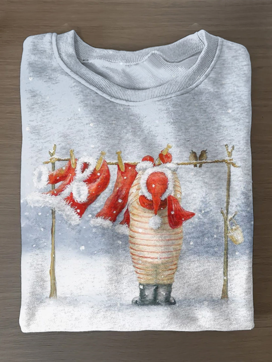 Winter Christmas Art Print Casual Crew Neck Pullover Sweater
