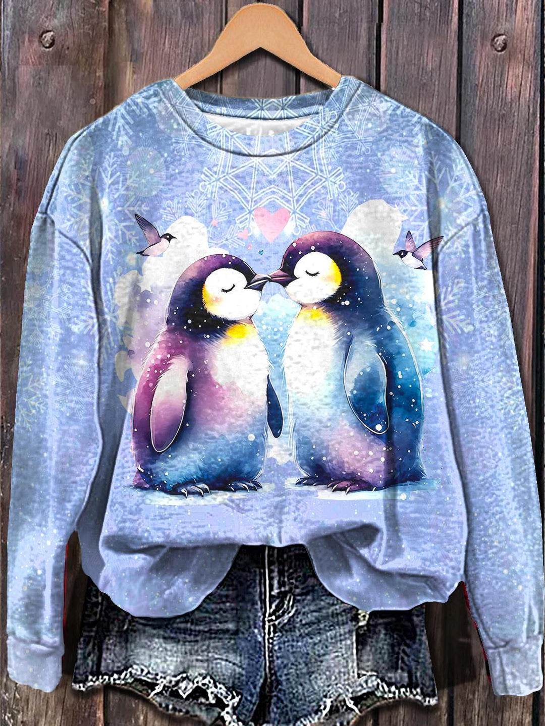 Winter Cute Penguin Printed Long Sleeve Casual Top