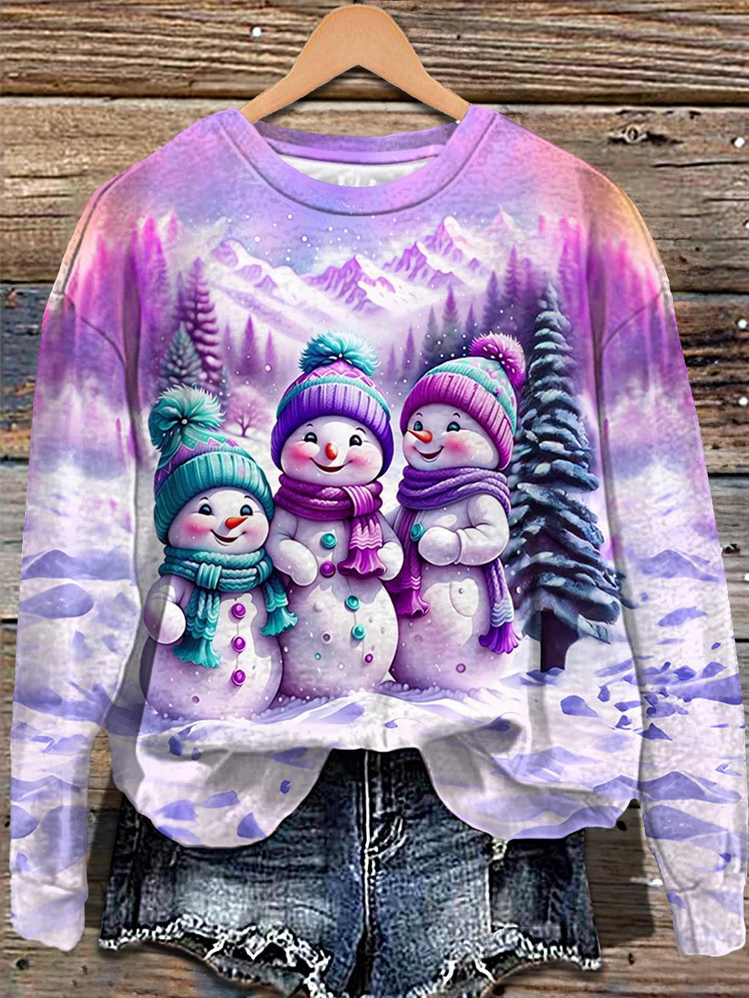 Winter Purple Snowman Printed Long Sleeve Casual Top