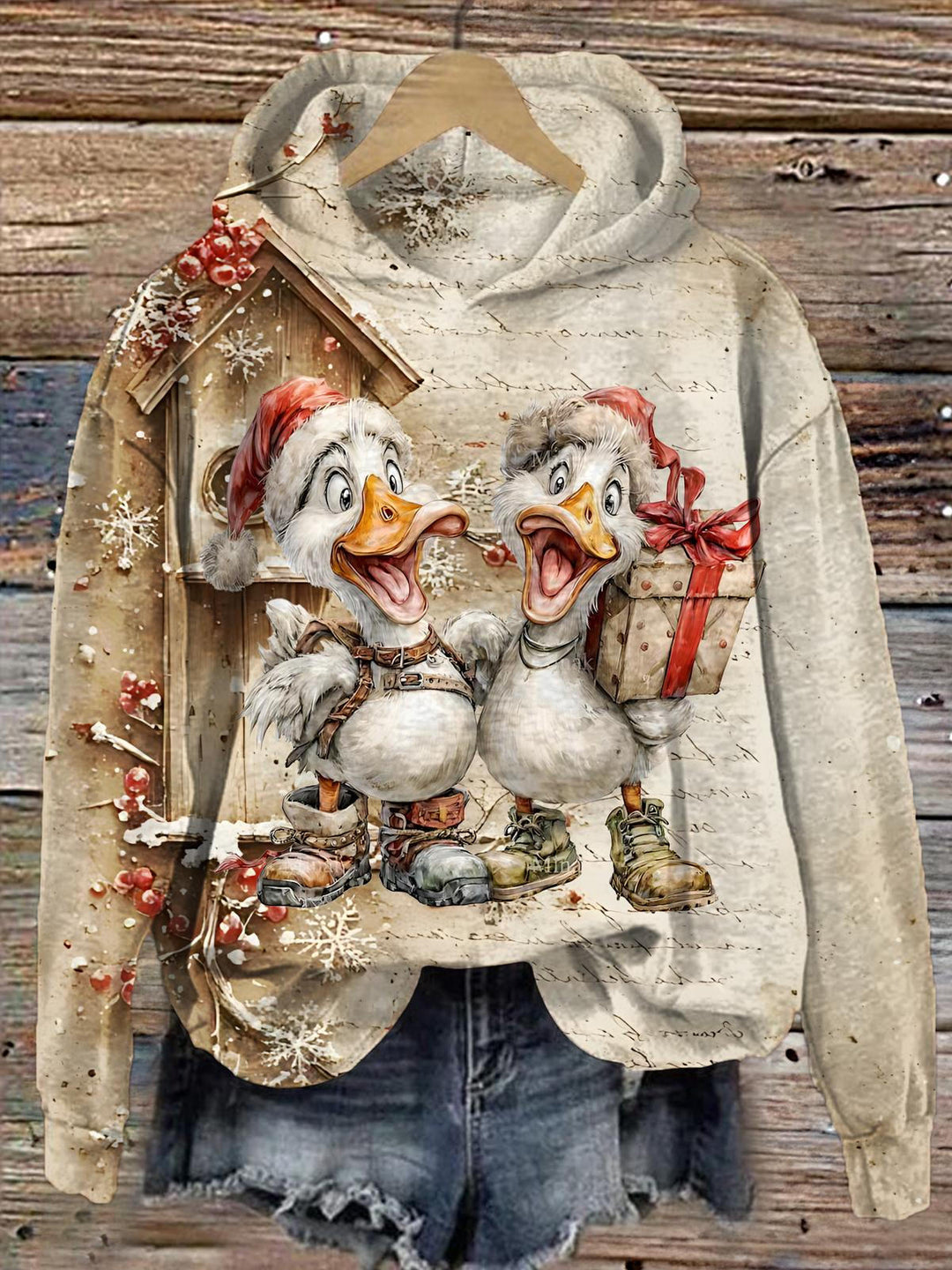 Retro Fun Duck Long Sleeve Printed Hoodie