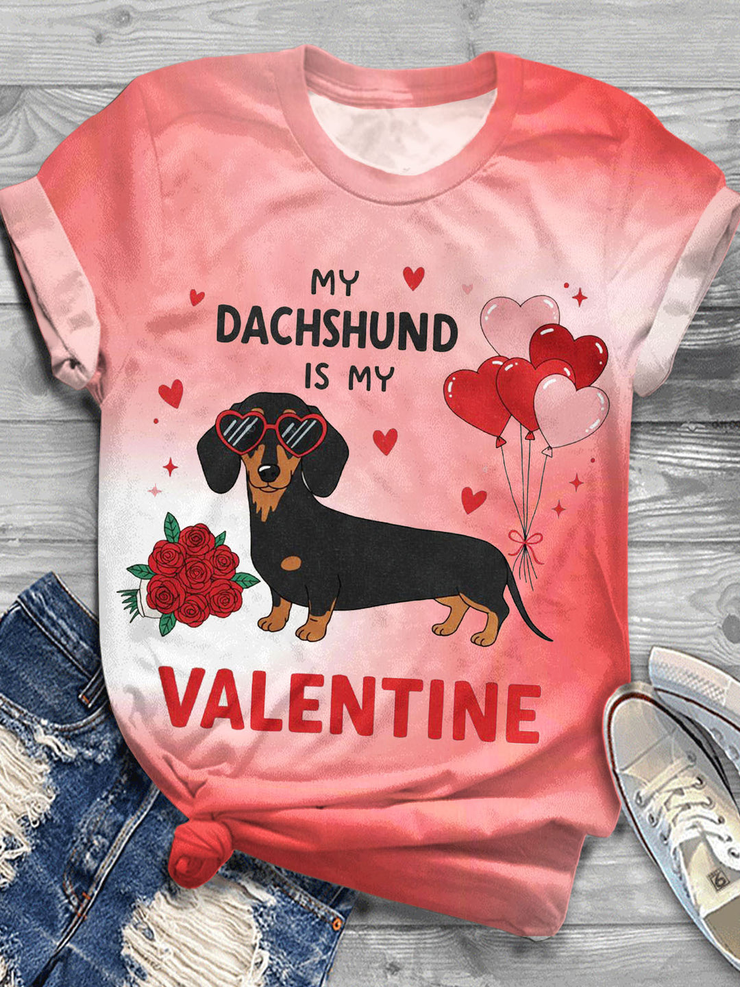 Valentine's Day Fun Sausage Dog Crew Neck T-shirt