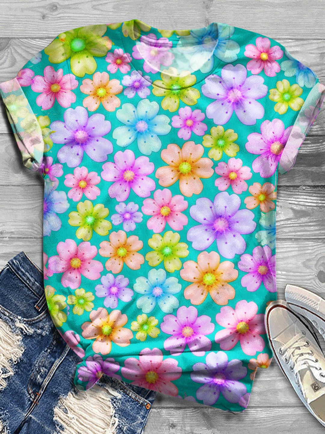 Fun Travel Sunflowers and Snoopy Crew Neck T-shirt
