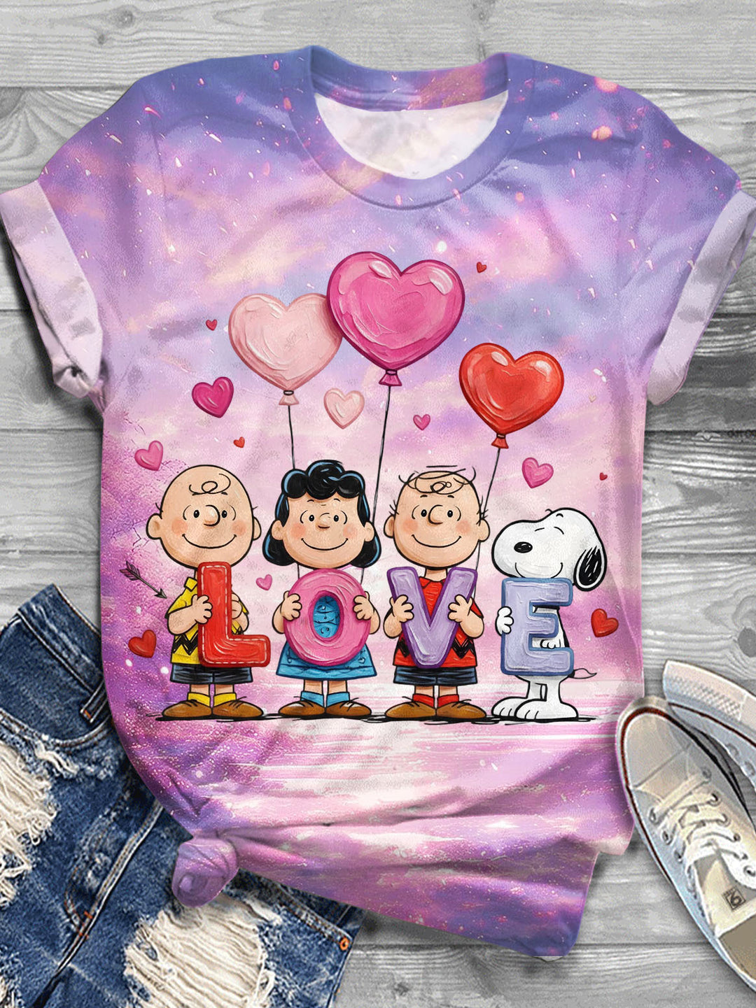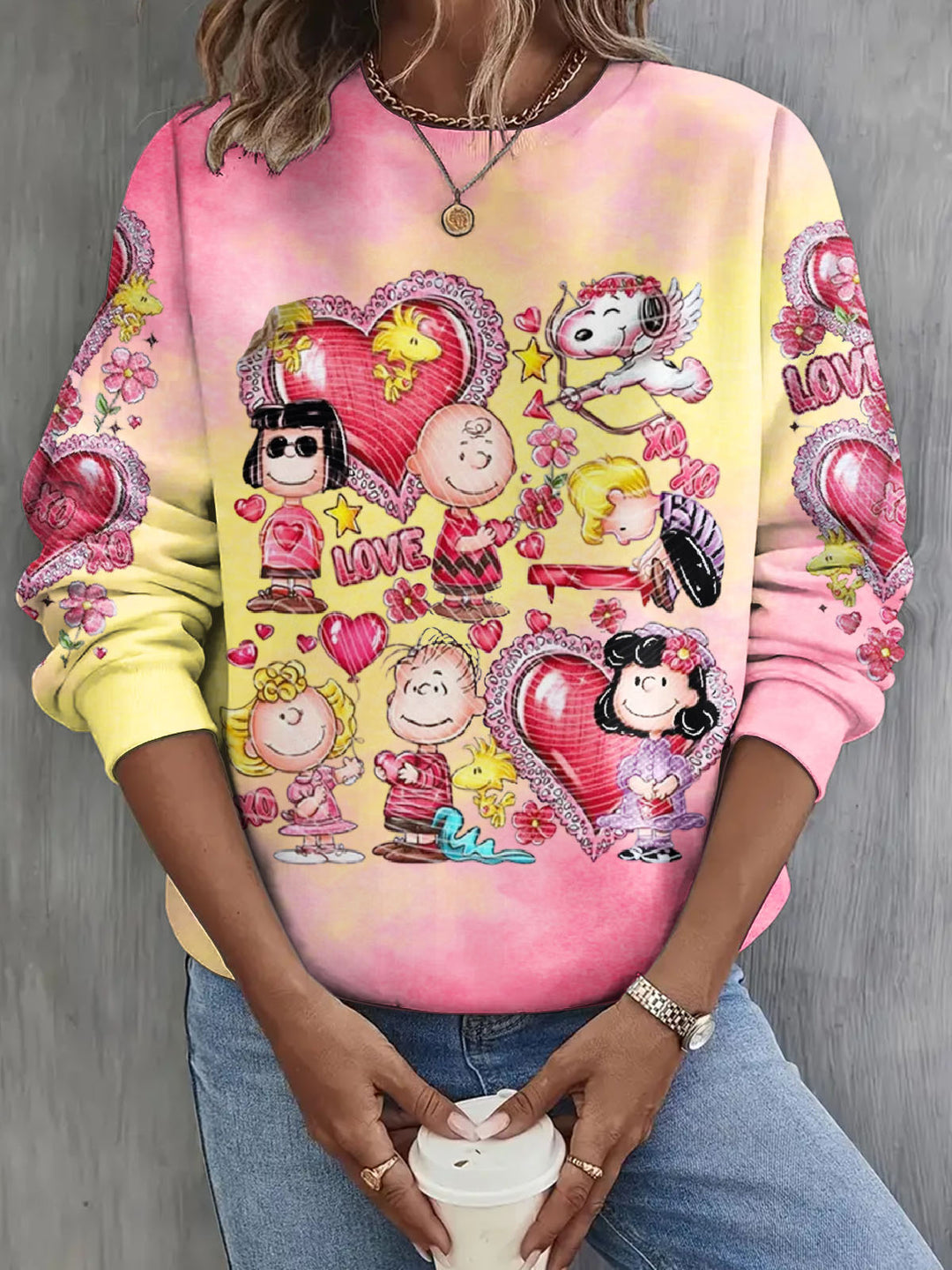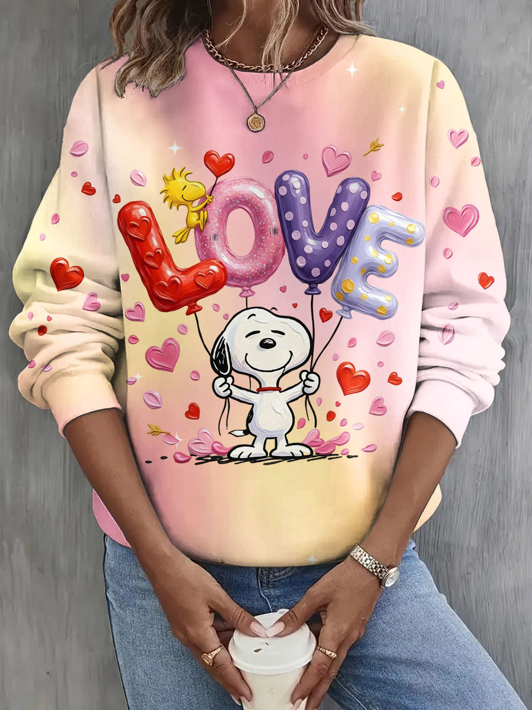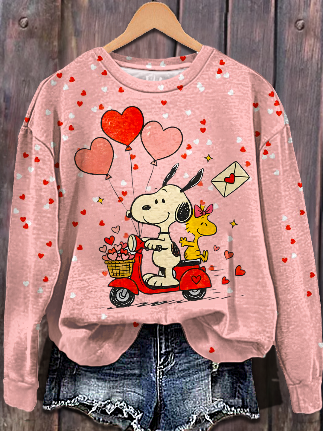 Valentine's Day Snoopy Printed Long Sleeve Casual Top