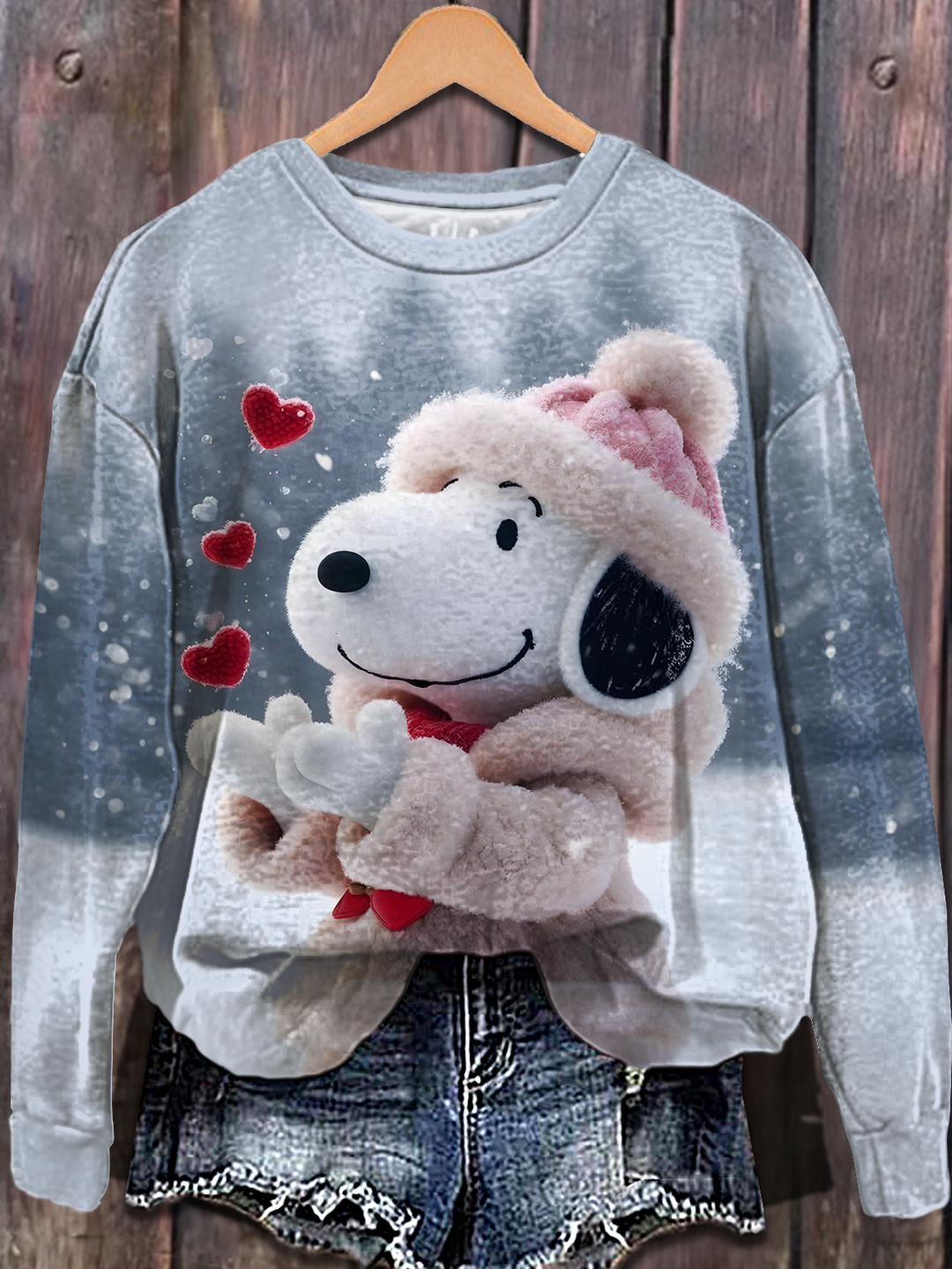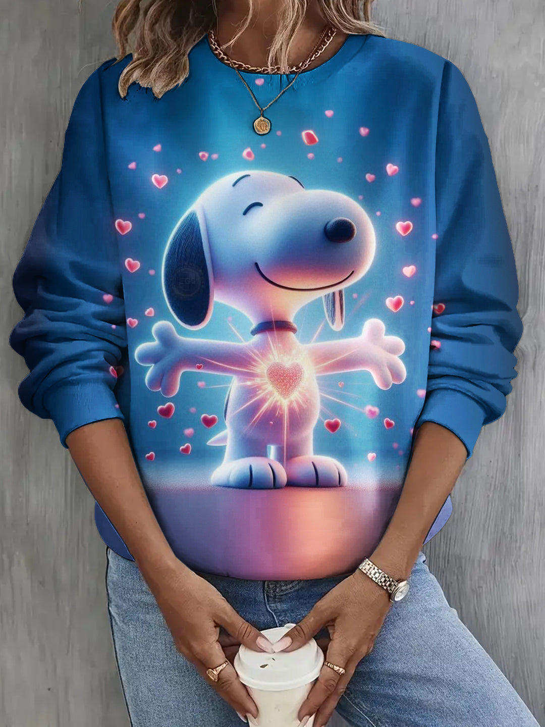 Snow Snoopy Love Printed Long Sleeve Casual Top